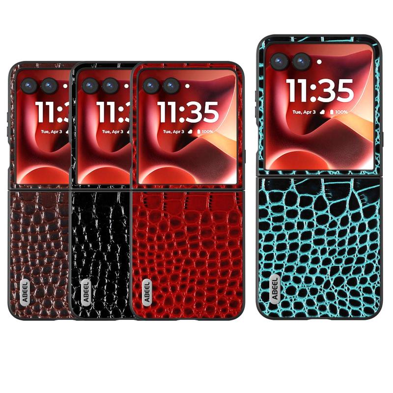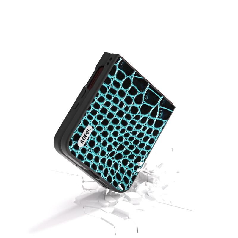 Θήκη τηλεφώνου από γνήσιο δέρμα με σχέδιο κροκόδειλου για Motorola Razr 60 Ultra ABEEL, μαύρο περίγραμμα (Μπλε)