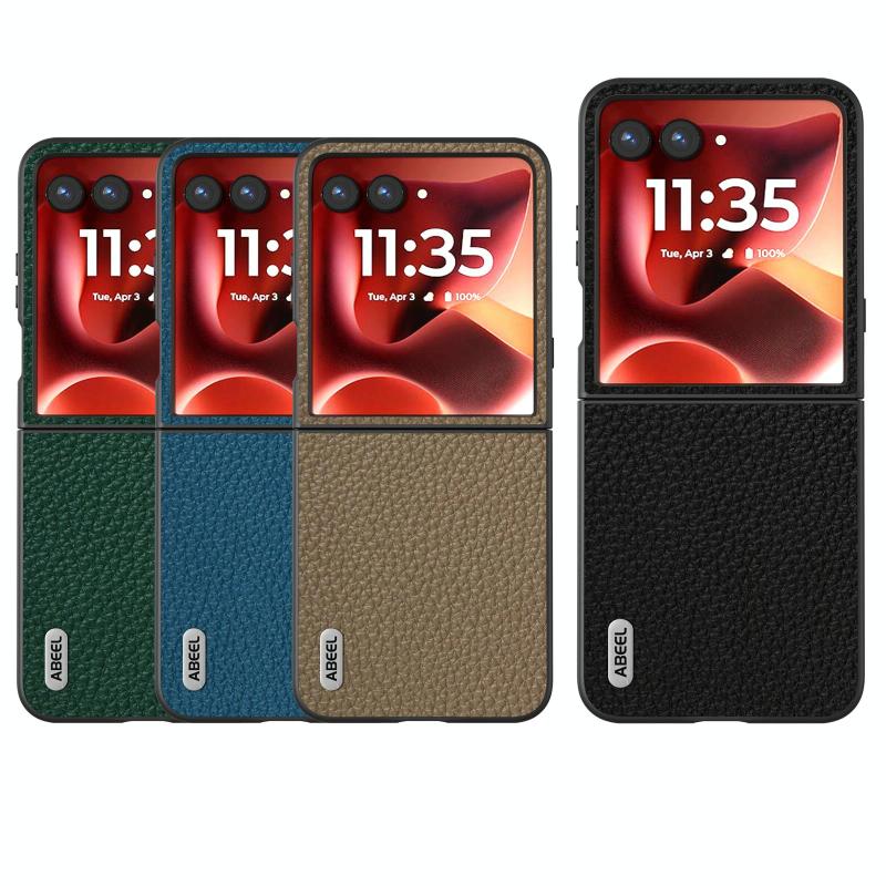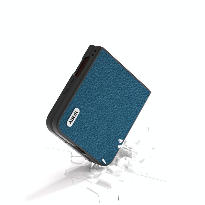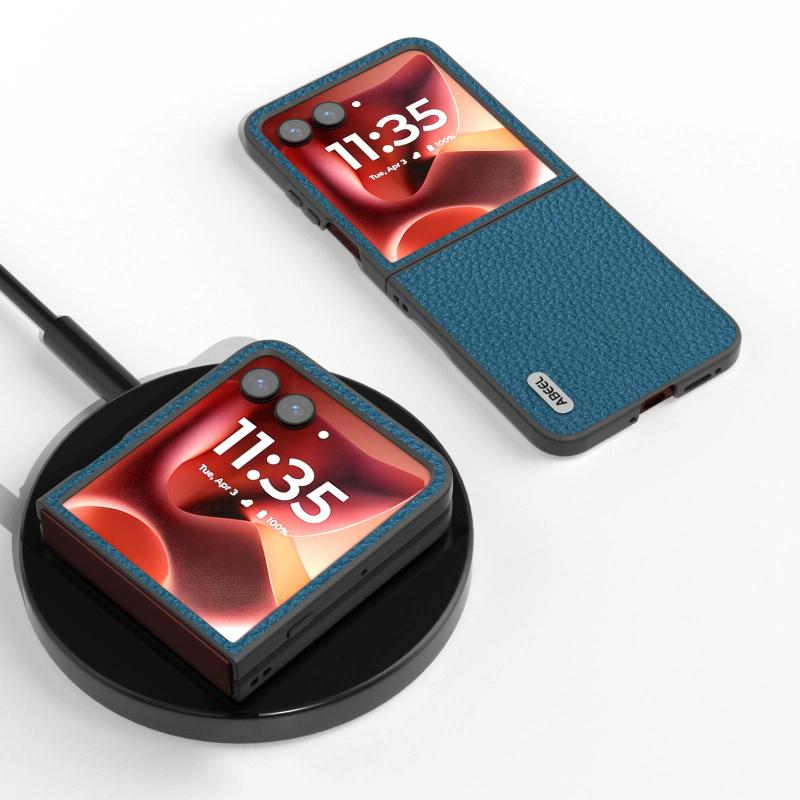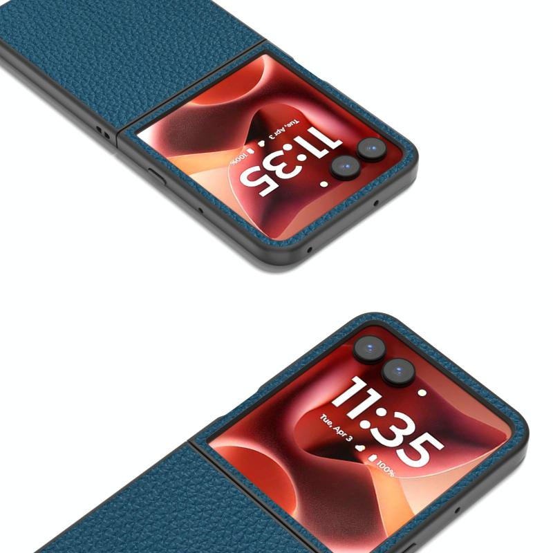 Θήκη κινητού από γνήσιο δέρμα με υφή Litchi για Motorola Razr 60 Ultra ABEEL (Μπλε)