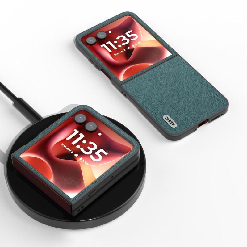 Θήκη τηλεφώνου Motorola Razr 60 Ultra ABEEL από γνήσιο δέρμα σειράς Luolai (Σκούρο πράσινο)