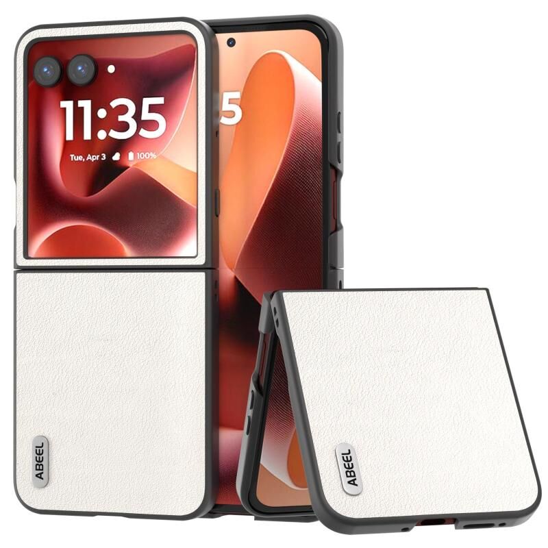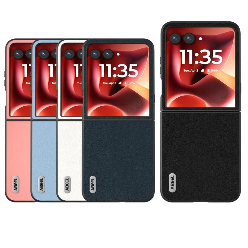 Θήκη τηλεφώνου από γνήσιο δέρμα για Motorola Razr 60 Ultra ABEEL, Μαύρο Κυματιστό Χείλος (Πράσινο)
