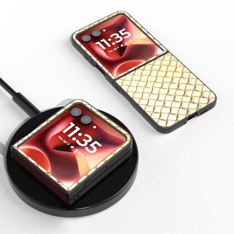 Θήκη τηλεφώνου Motorola Razr 60 Ultra Μαύρο Πλαίσιο, Υφή Υφαντού PU (Χρυσός)