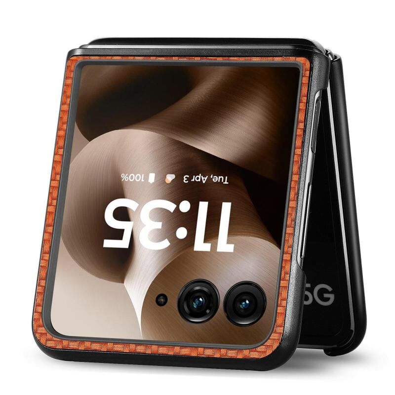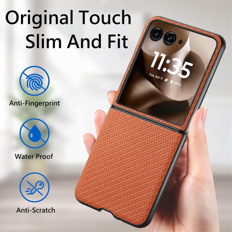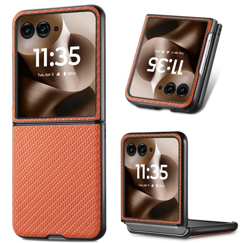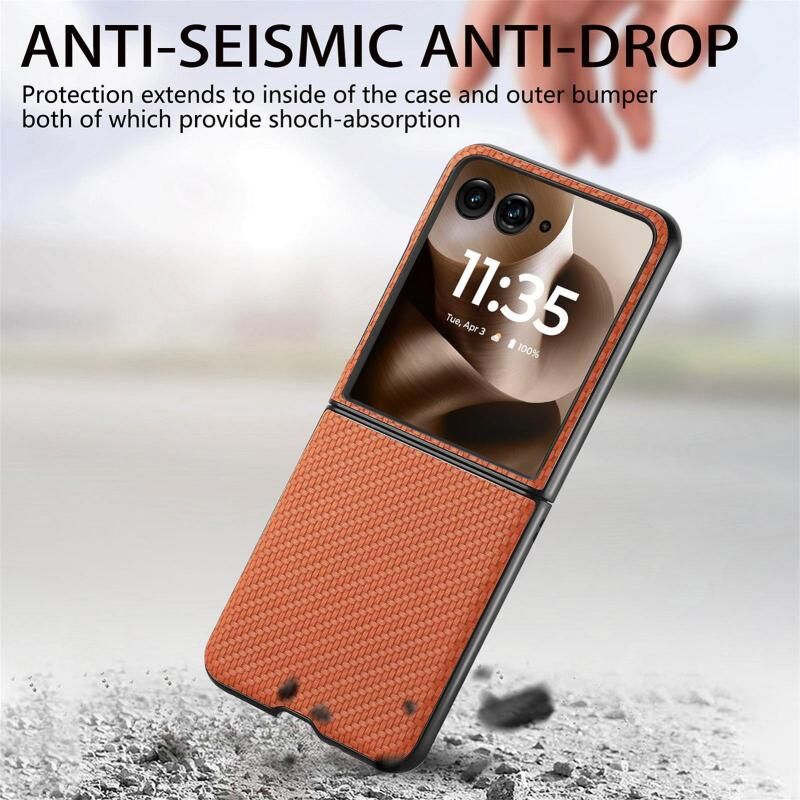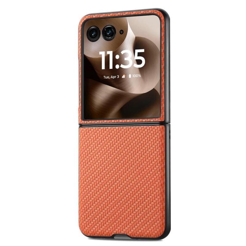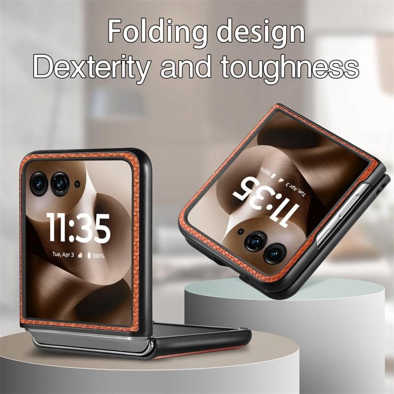Θήκη τηλεφώνου για Motorola Razr 60 Ultra με υφή ανθρακονημάτων και δερμάτινη πλάτη (Μαύρο)