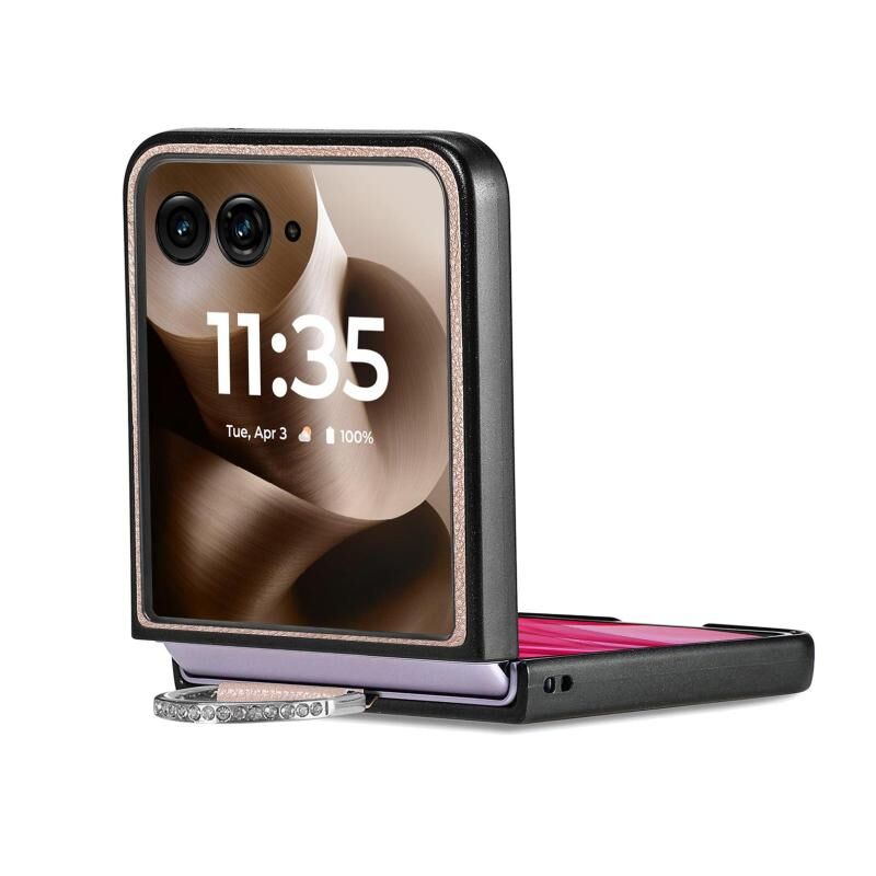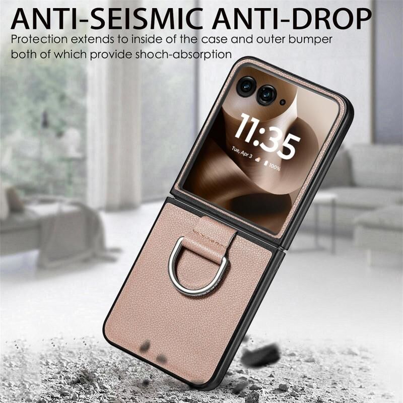 Θήκη τηλεφώνου με δακτύλιο και υφή δέρματος Litchi για Motorola Razr 60 Ultra (Γκρι)