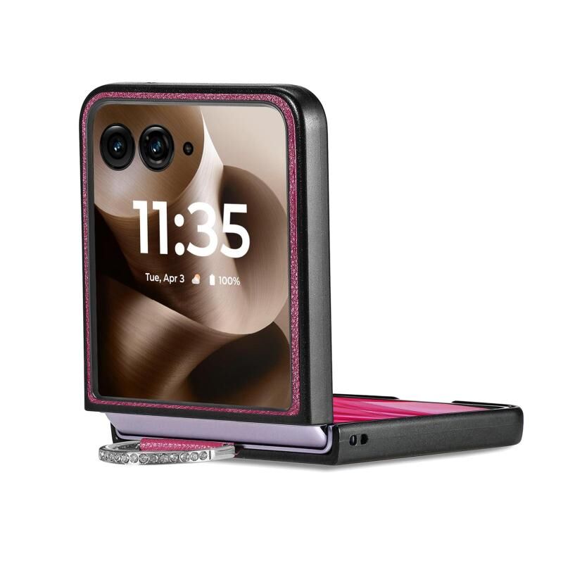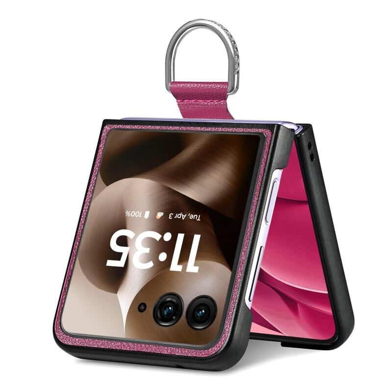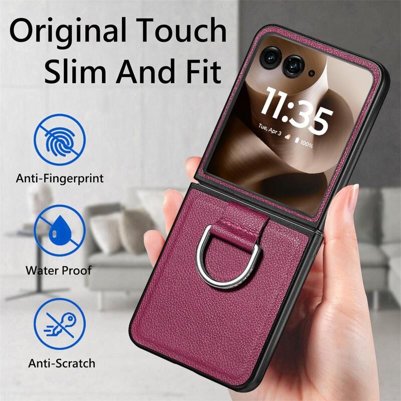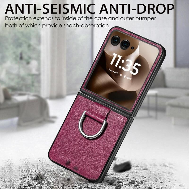 Θήκη τηλεφώνου με δακτύλιο και υφή δέρματος Litchi για Motorola Razr 60 Ultra (Γκρι)
