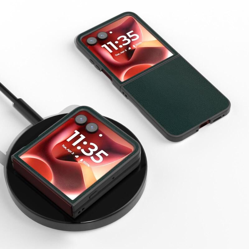Θήκη κινητού τηλεφώνου πλήρους κάλυψης από δερματίνη PU για Motorola Razr 60 Ultra, μαύρο πλαίσιο (πράσινο)