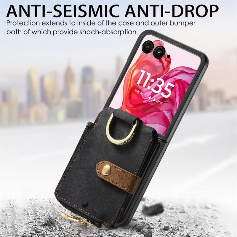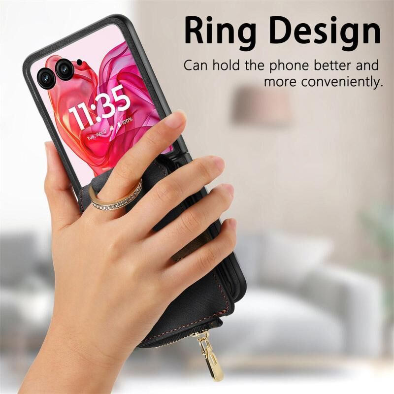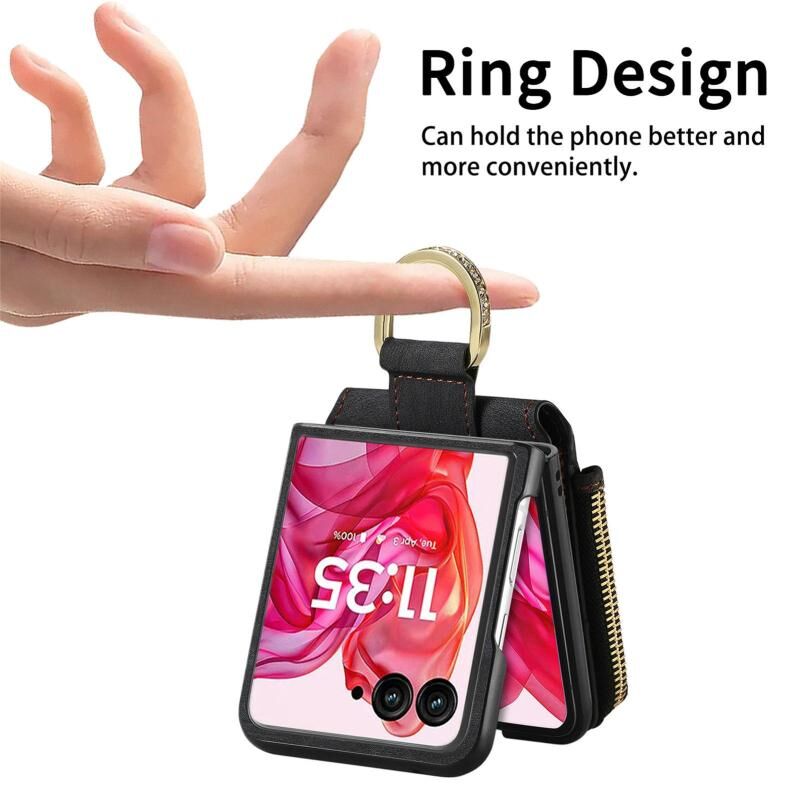 Θήκη τηλεφώνου για Motorola Razr 60 Ultra, Ρετρό Δαχτυλίδι, Κάθετη με Φερμουάρ, Πορτοφόλι (Πράσινο)