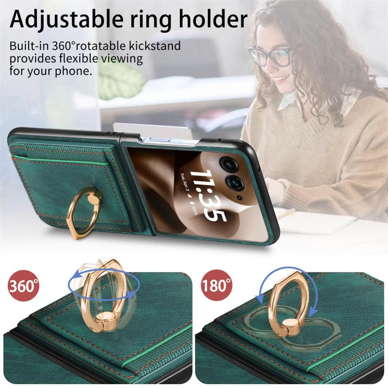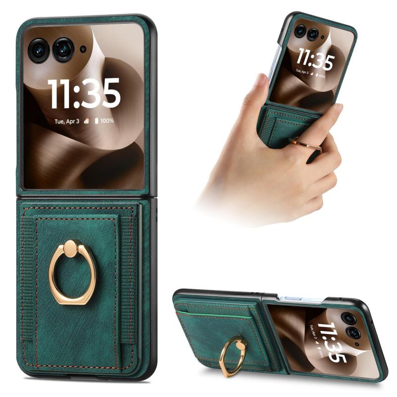 For Motorola Razr 60 Ultra Retro Skin-feel Ring Card Bag Phone Case(Green)