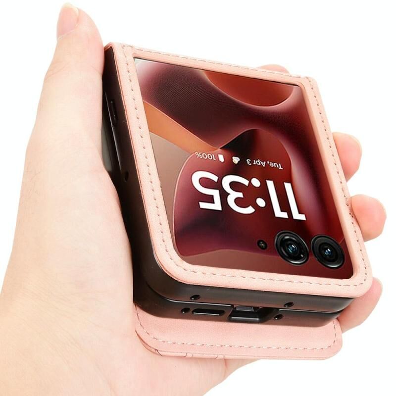 For Motorola Razr 60 Ultra Skin Feel Card Slot Leather Phone Case(Pink)