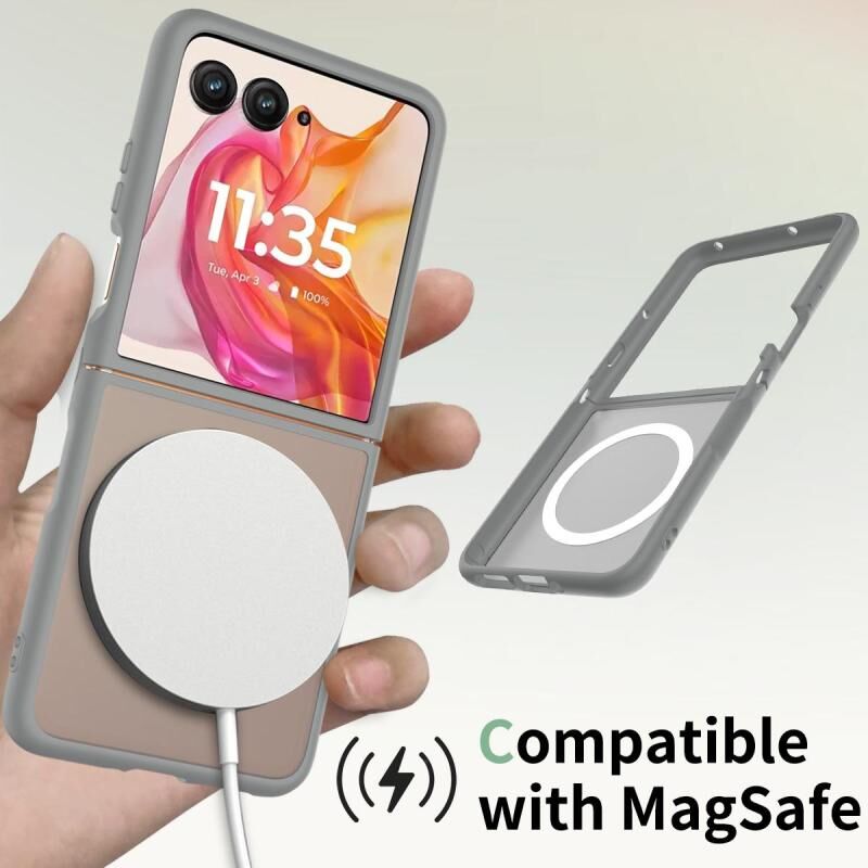 Θήκη τηλεφώνου για Motorola Razr 60 Ultra, υβριδική από TPU και PC με αίσθηση δέρματος και MagSafe (Σκούρο γκρι)