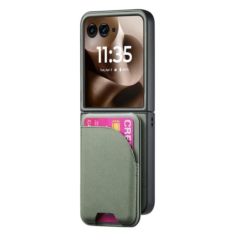Θήκη κινητού τηλεφώνου με μαγνητική πλάτη για Motorola Razr 60 Ultra, από ύφασμα Twill και δέρμα, με θήκη καρτών (Μαύρο)