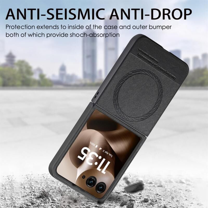 Θήκη κινητού τηλεφώνου με μαγνητική πλάτη από δέρμα και ύφασμα Twill για Motorola Razr 60 Ultra (Μαύρο)