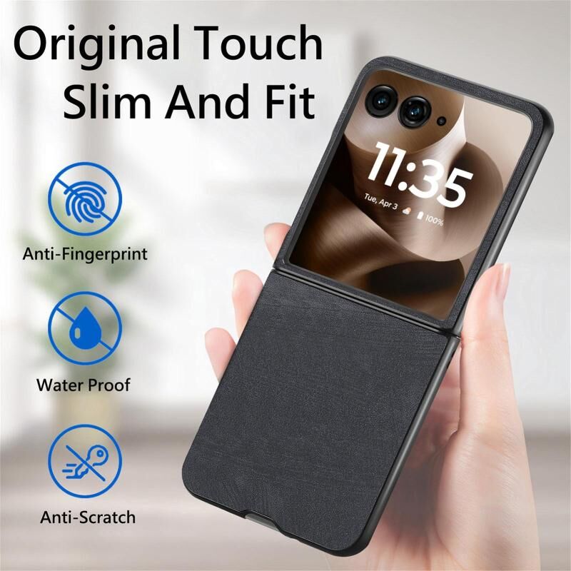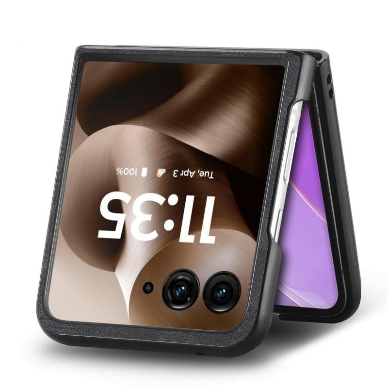 Θήκη κινητού τηλεφώνου για Motorola Razr 60 Ultra, από δέρμα vintage και πολυανθρακικό (PC), πίσω κάλυμμα (Μαύρο)