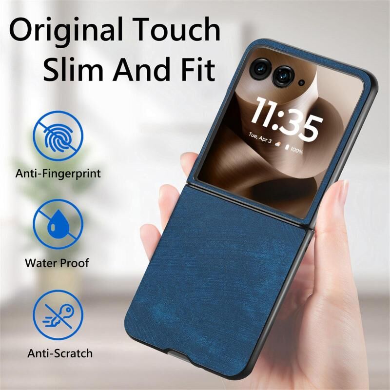 Θήκη κινητού τηλεφώνου για Motorola Razr 60 Ultra, από δέρμα vintage και πολυανθρακικό (PC), πίσω κάλυμμα (Μαύρο)
