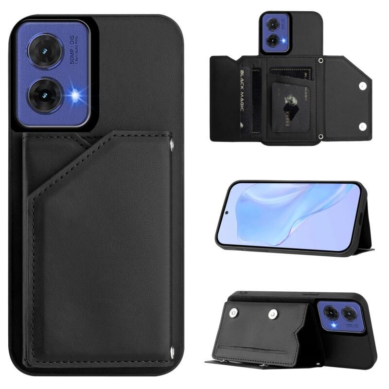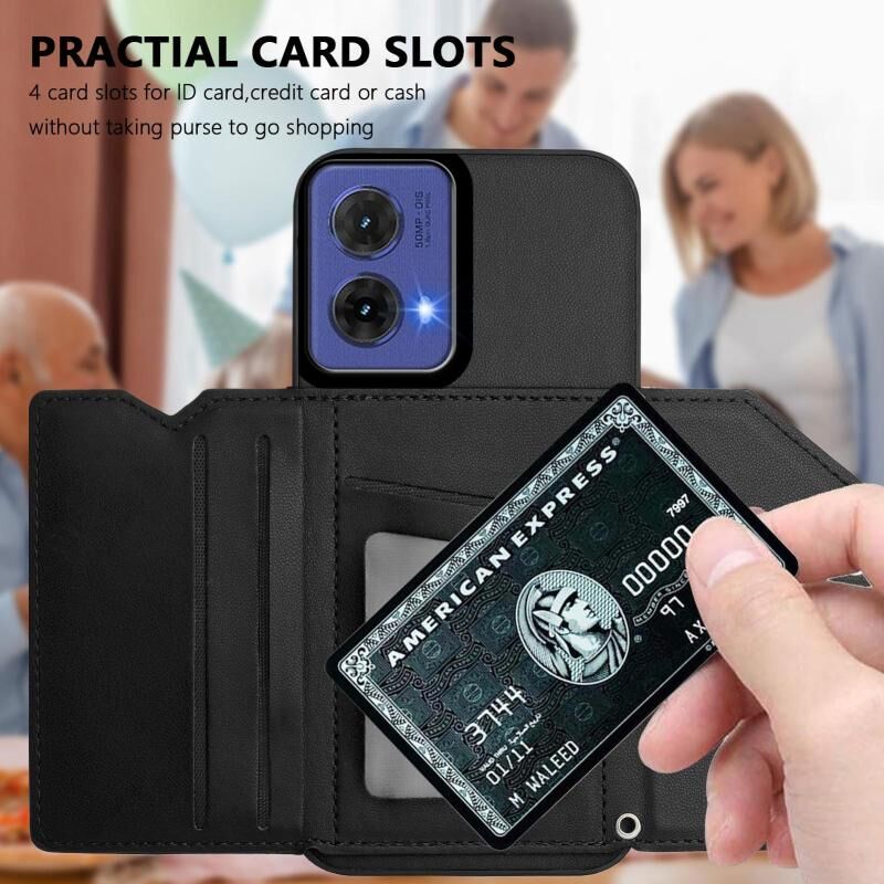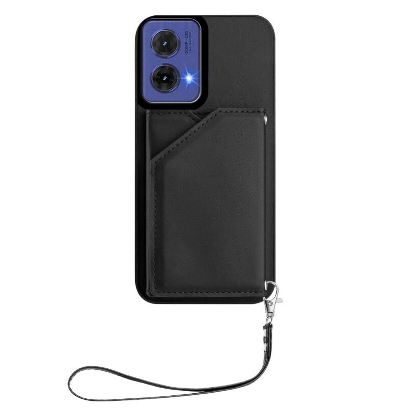 For Motorola S50 Neo Skin Feel Four Card Slots Phone Case with Wrist Strap(Black)
