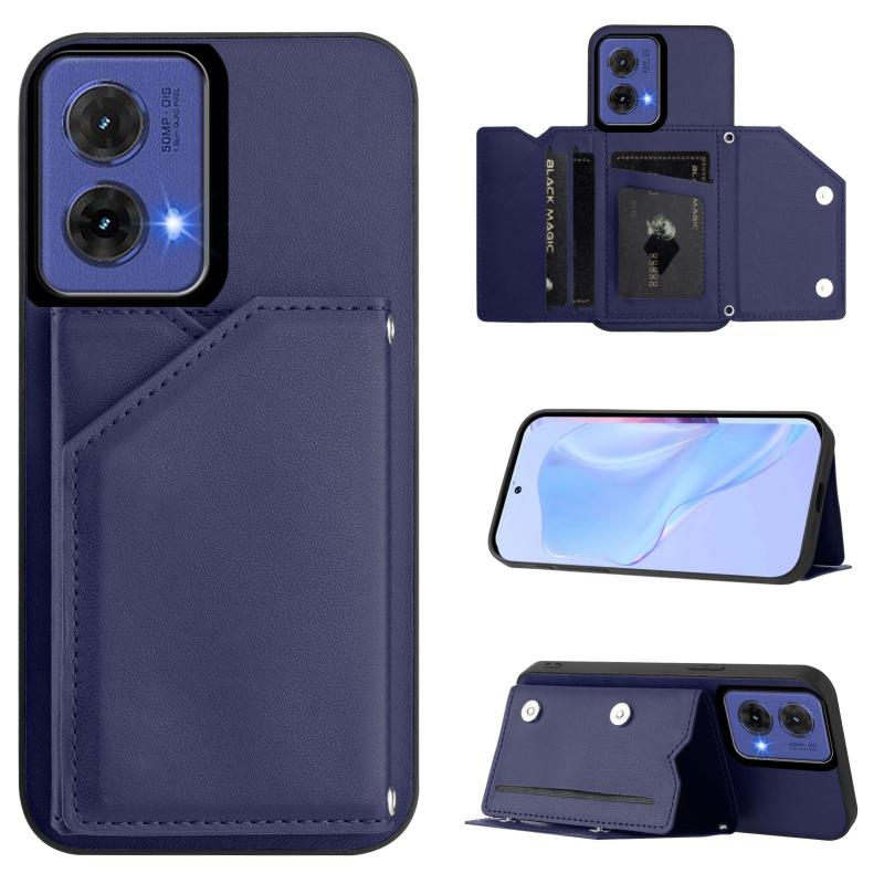For Motorola S50 Neo Skin Feel Four Card Slots Phone Case with Wrist Strap(Blue)