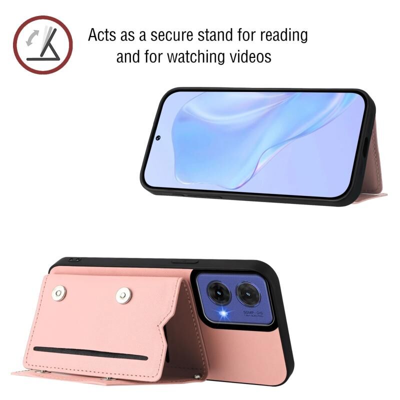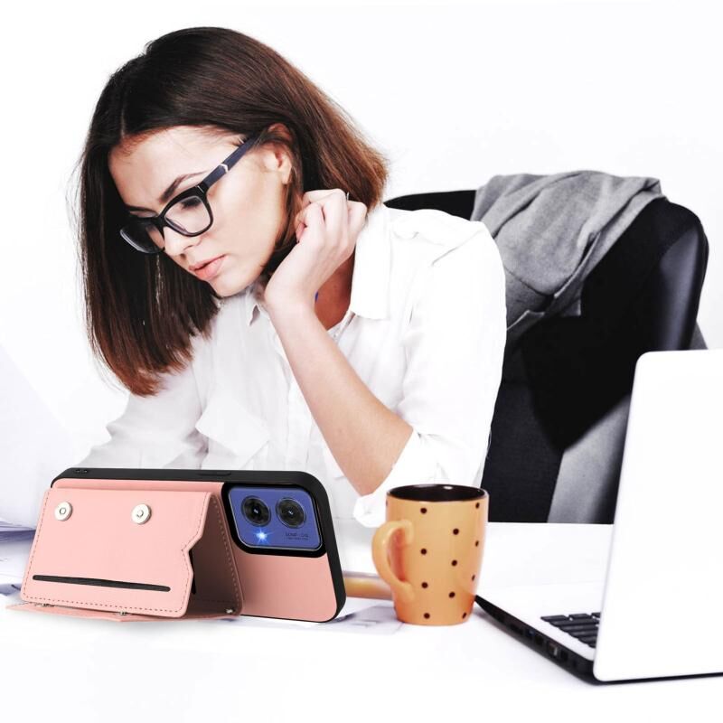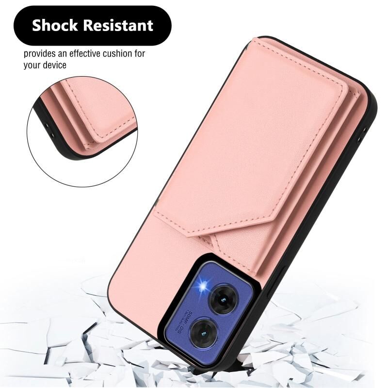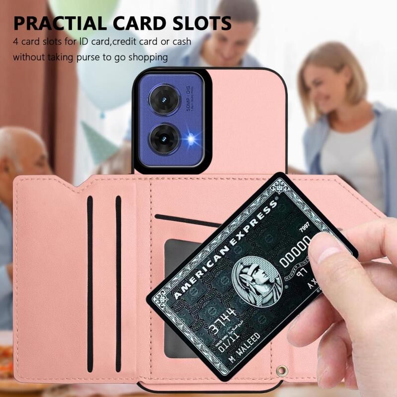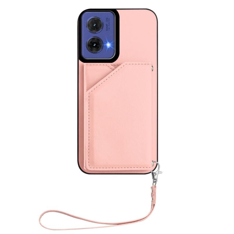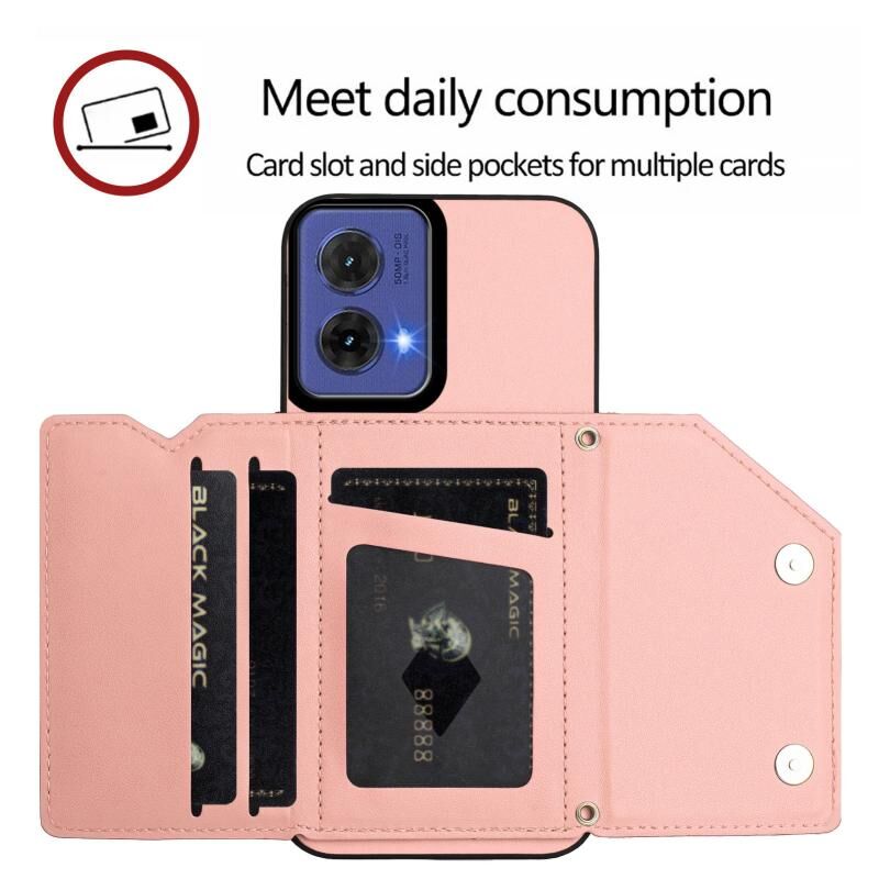 Θήκη κινητού τηλεφώνου για Motorola S50 Neo με αίσθηση δέρματος, τέσσερις θήκες για κάρτες και λουρί καρπού (ρόζ)
