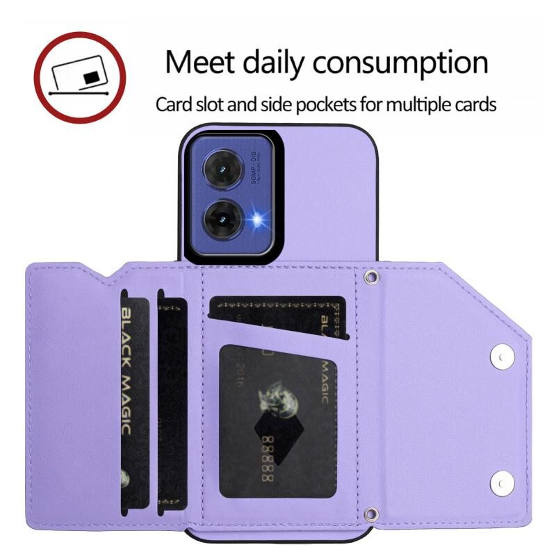 1. Πολυλειτουργικός Σχεδιασμός: Συνδυάζει λειτουργίες θήκης τηλεφώνου και πορτοφολιού για εύκολη μεταφορά.