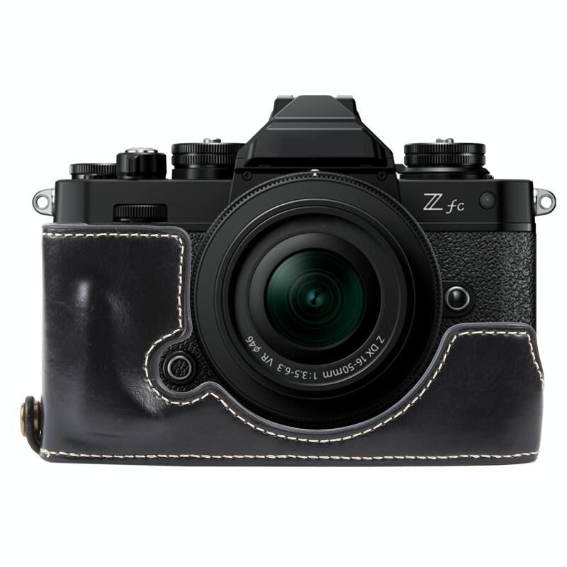 Για Nikon ZFC Γυαλιστερό PU δέρμα φωτογραφική μηχανή μισή θήκη βάσης (μαύρο)