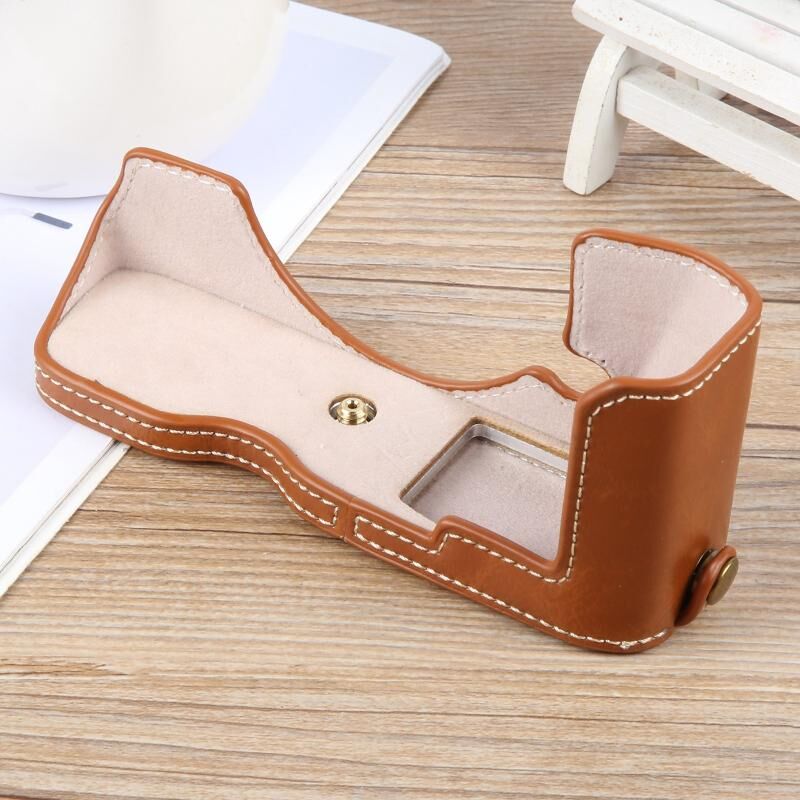 Για Nikon ZFC γυαλιστερό PU δέρμα φωτογραφικής μηχανής μισή βάση θήκης (καφέ)