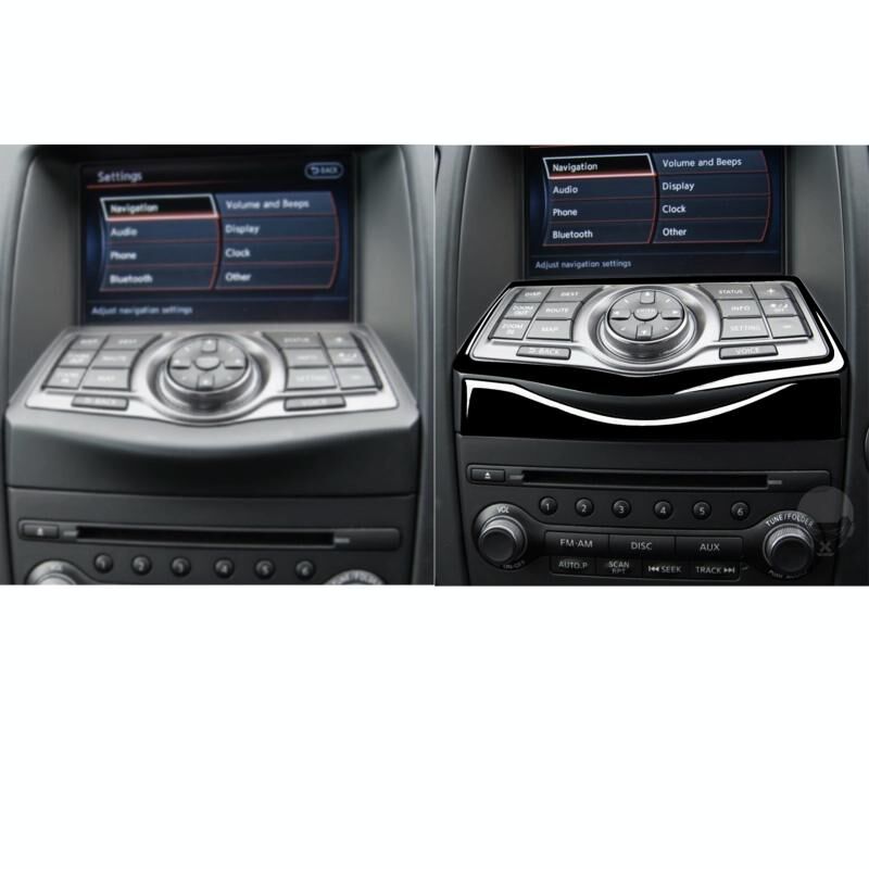 For Nissan 370Z Z34 2009- 2 in 1 Car Multimedia Navigation Button Frame Decorative Sticker, Left and Right Drive Universal (Black)