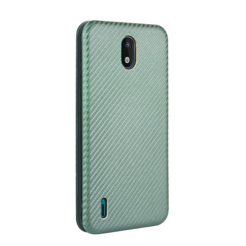 For Nokia 1.3 Carbon Fiber Texture Horizontal Flip TPU + PC + PU Leather Case with Card Slot(Green)