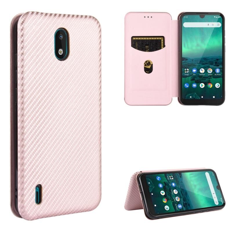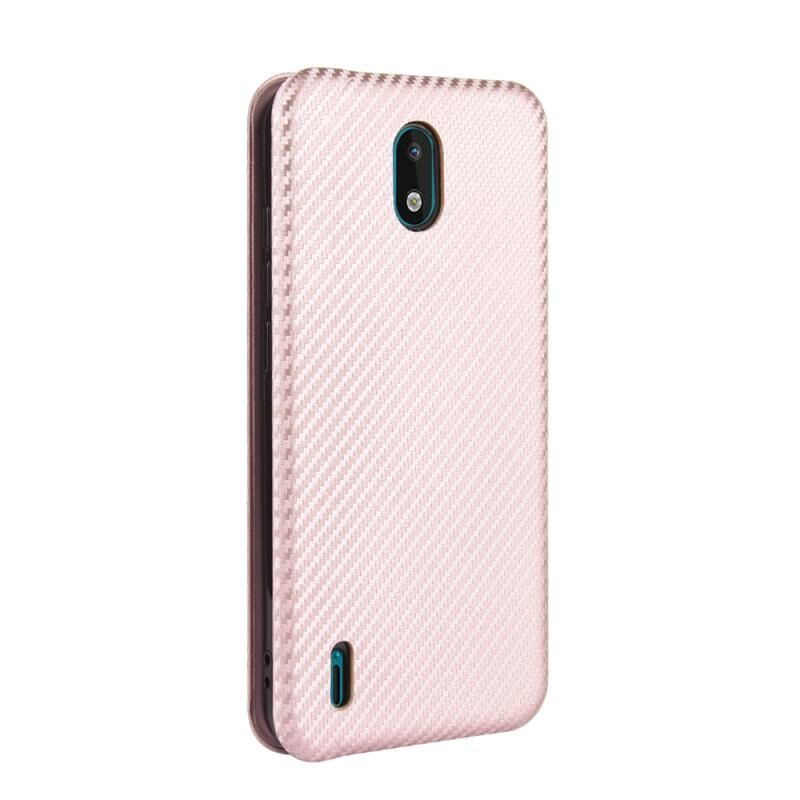 For Nokia 1.3 Carbon Fiber Texture Horizontal Flip TPU + PC + PU Leather Case with Card Slot(Pink)
