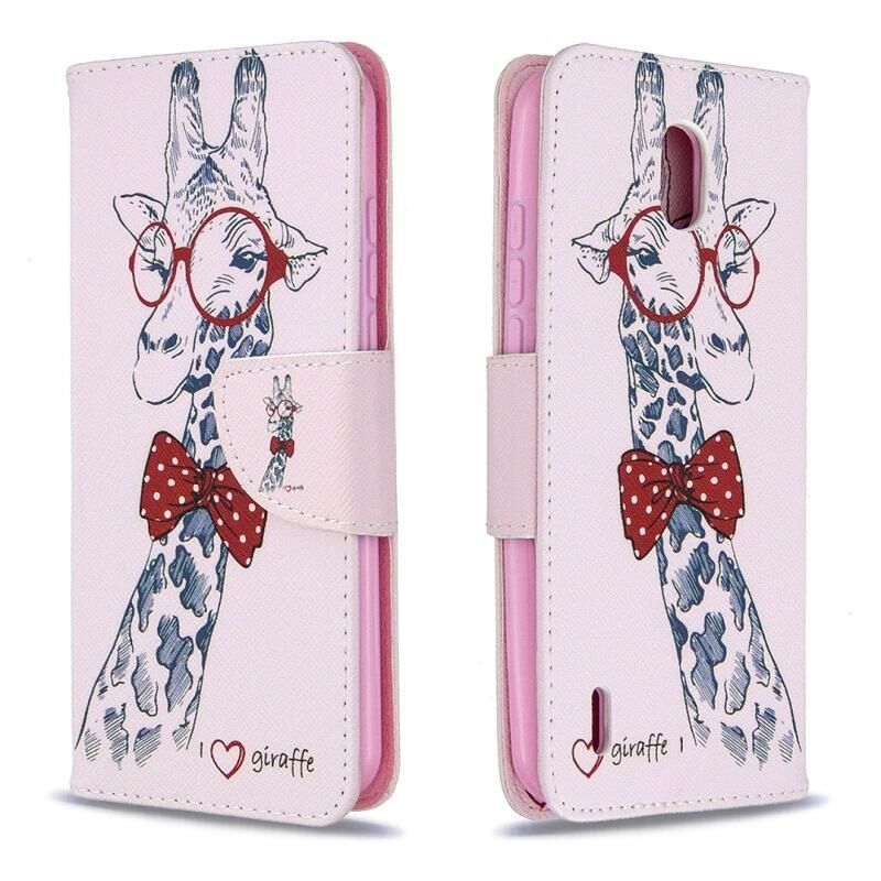 Θήκη δέρματος για Nokia 1.3 με σχέδιο έγχρωμου σχεδίου, οριζόντια αναδίπλωση, με βάση & υποδοχές καρτών & πορτοφόλι (Ελάφι)