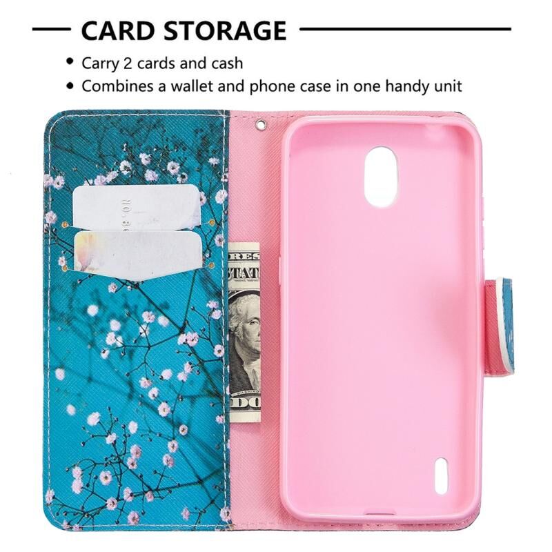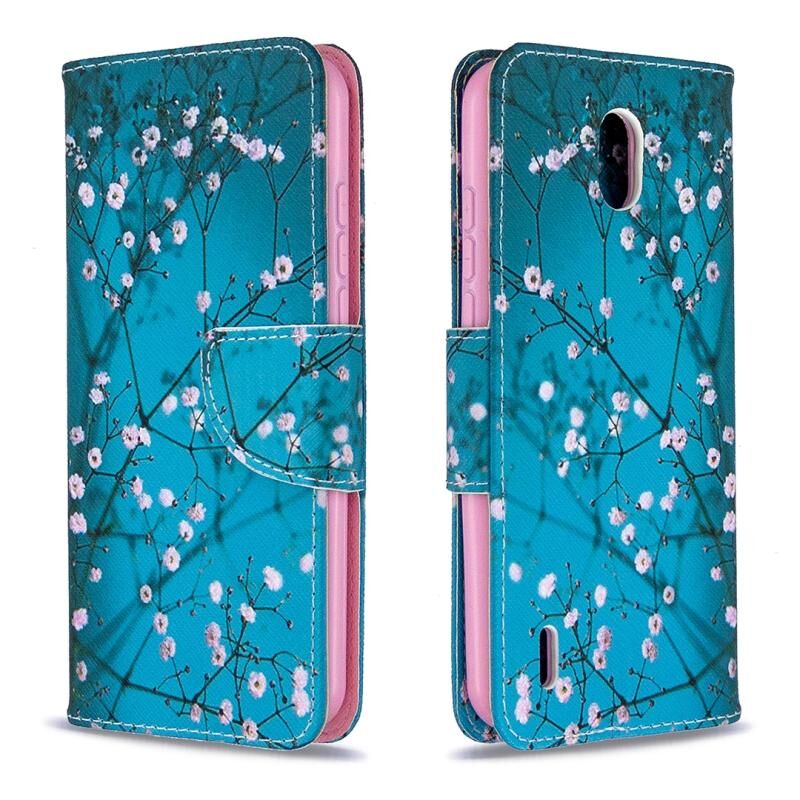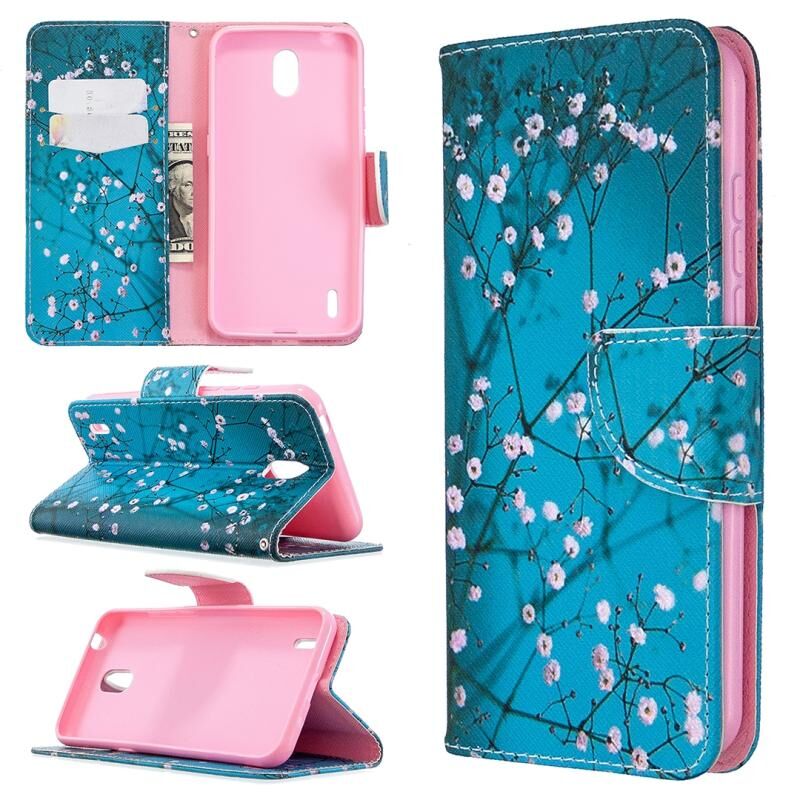 Θήκη δέρματος για Nokia 1.3 με σχέδιο πολύχρωμου σχεδίου, οριζόντια αναδίπλωση, με βάση & υποδοχές καρτών & πορτοφόλι (Λουλούδι Δαμασκηνιάς)
