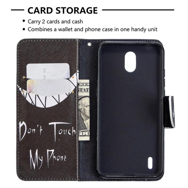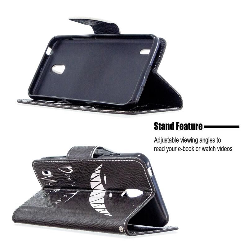 Θήκη δέρματος για Nokia 1.3 με έγχρωμο σχέδιο, οριζόντια αναδίπλωση, με βάση & υποδοχές καρτών & πορτοφόλι (Smirk)