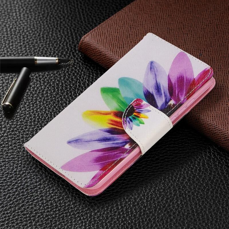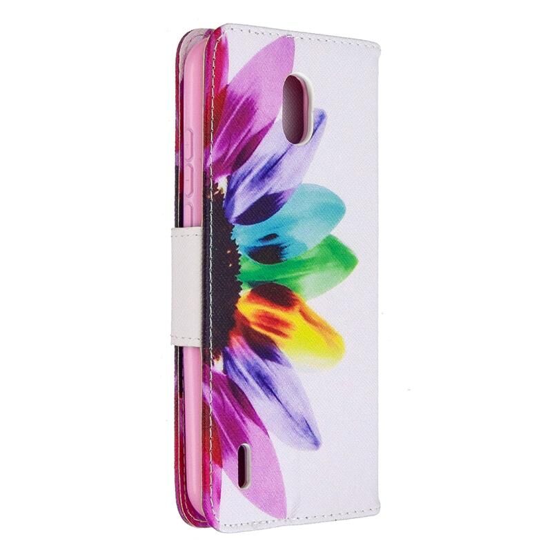 Θήκη δέρματος για Nokia 1.3 με σχέδιο πολύχρωμου σχεδίου, οριζόντια αναδίπλωση, με βάση & υποδοχές καρτών & πορτοφόλι (Ηλίανθος)