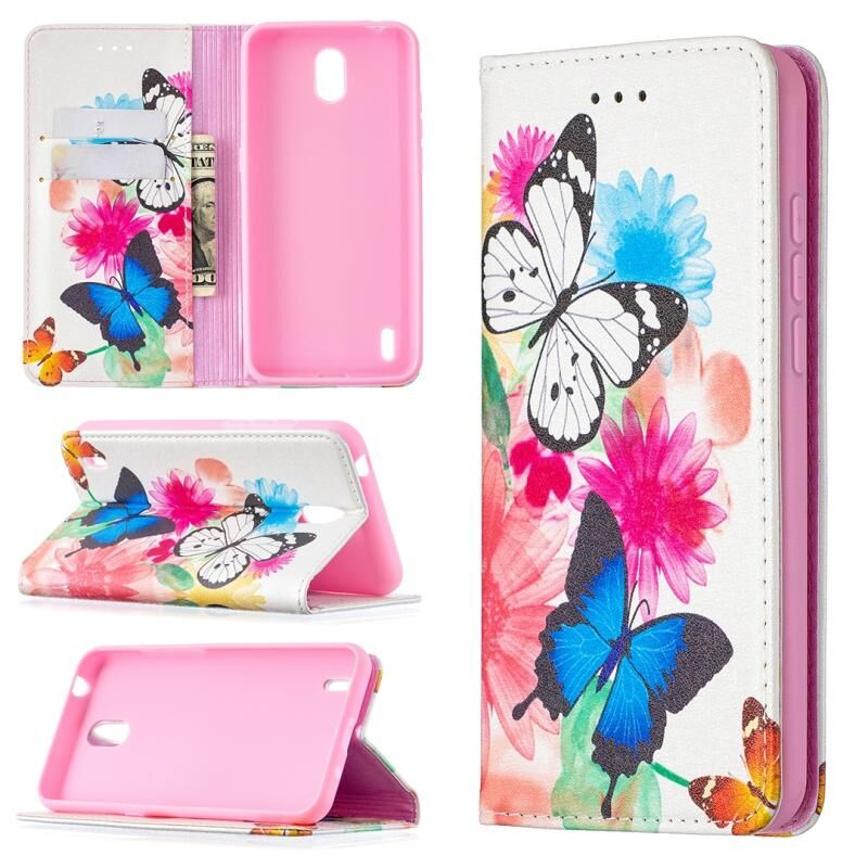 For Nokia 1.3 Colored Drawing Pattern Invisible Magnetic Horizontal Flip PU Leather Case with Holder & Card Slots & Wallet(Two Butterflies)