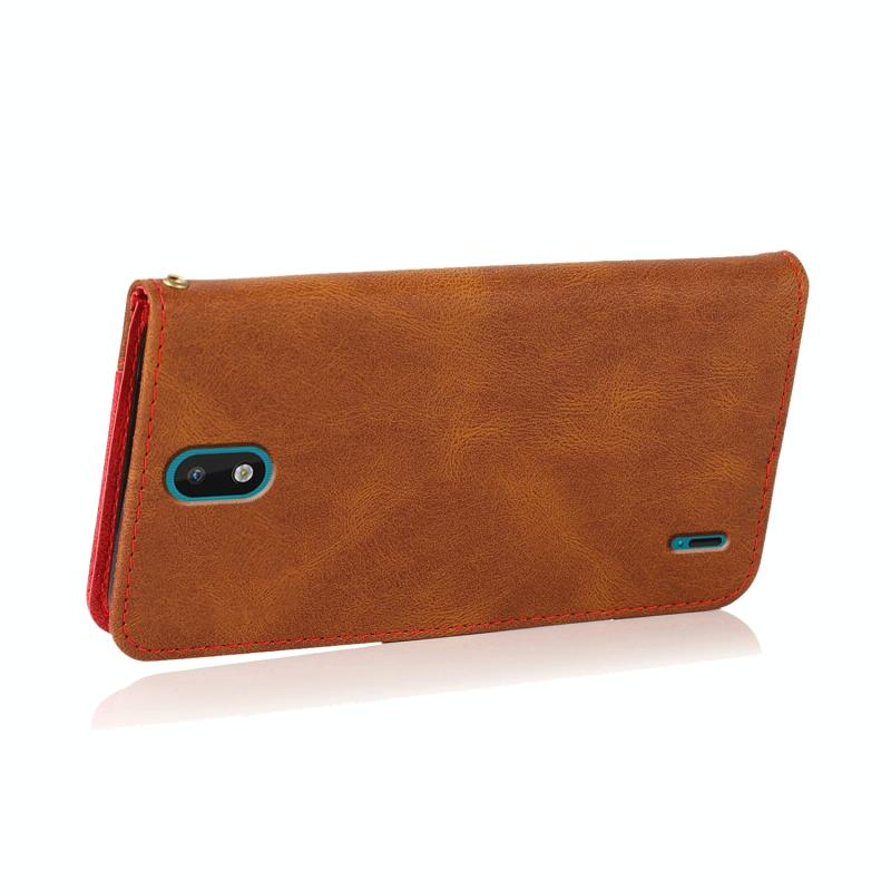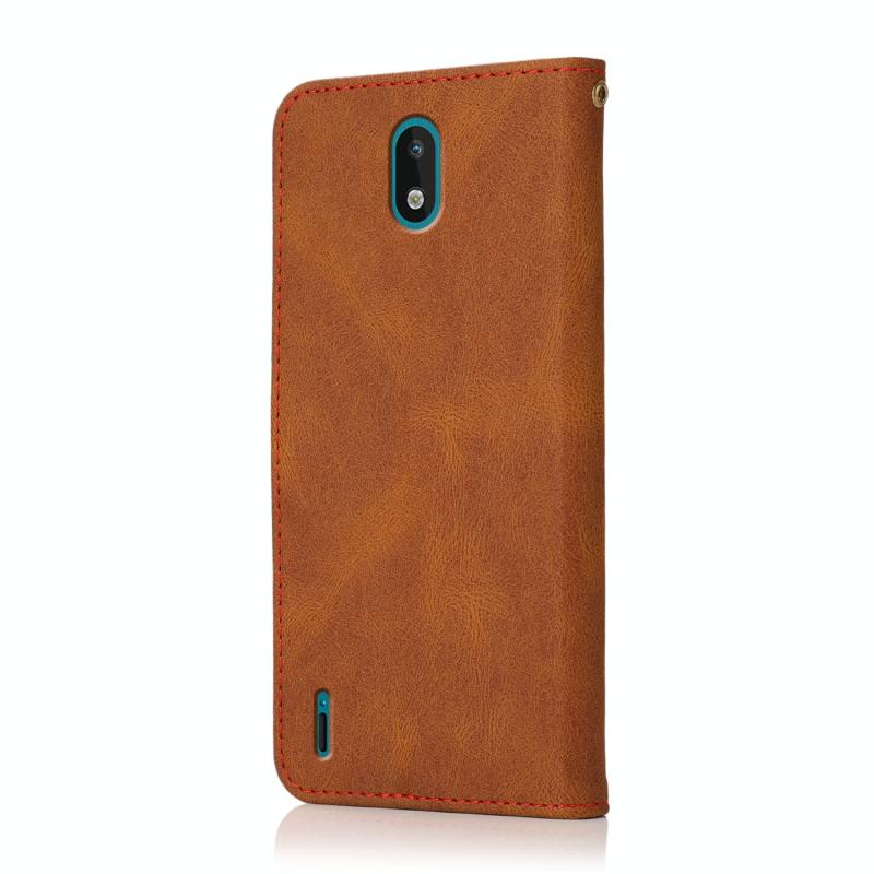 Θήκη τηλεφώνου από δέρμα με διπλή ραφή για Nokia 1.3 (Καφέ Κόκκινο)