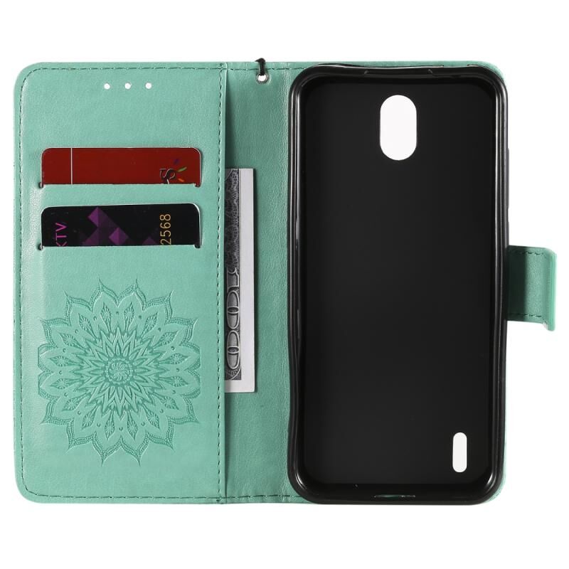 Για Nokia 1.3 Ανάγλυφο ηλιοτρόπιο μοτίβο οριζόντια Flip PU δέρμα υπόθεση με κάτοχο & υποδοχές για κάρτες & πορτοφόλι & κορδόνι (πράσινο)
