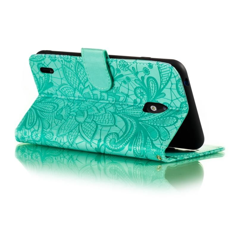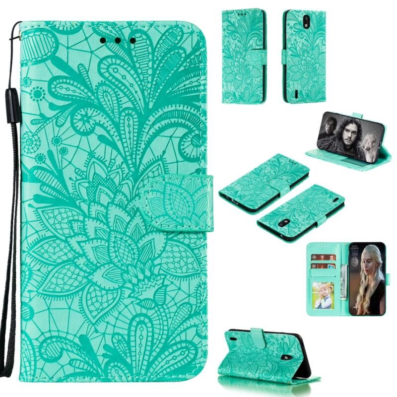 For Nokia 1.3 Lace Flower Embossing Pattern Horizontal Flip Leather Case , with Holder & Card Slots & Wallet & Photo Frame & Lanyard(Green)