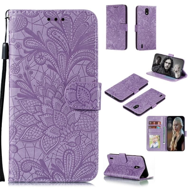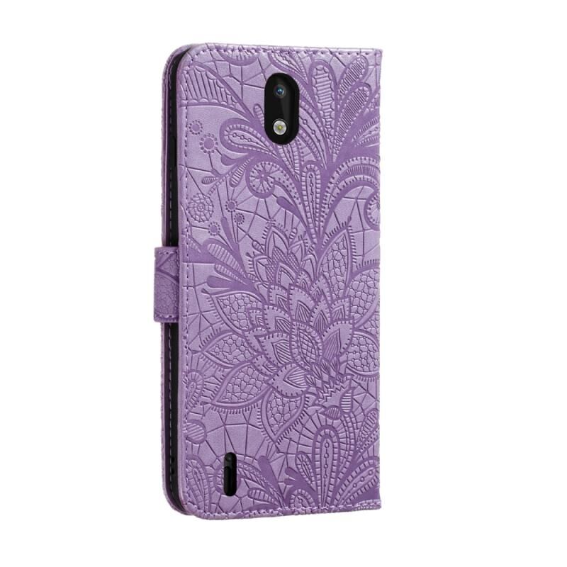 Θήκη δέρματος οριζόντιας αναδίπλωσης για Nokia 1.3 με σχέδιο ανάγλυφου λουλουδιού Lace, με βάση & υποδοχές καρτών & πορτοφόλι & κορνίζα φωτογραφιών & κορδόνι (Χρυσό Ρόδι)