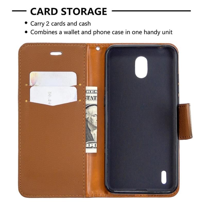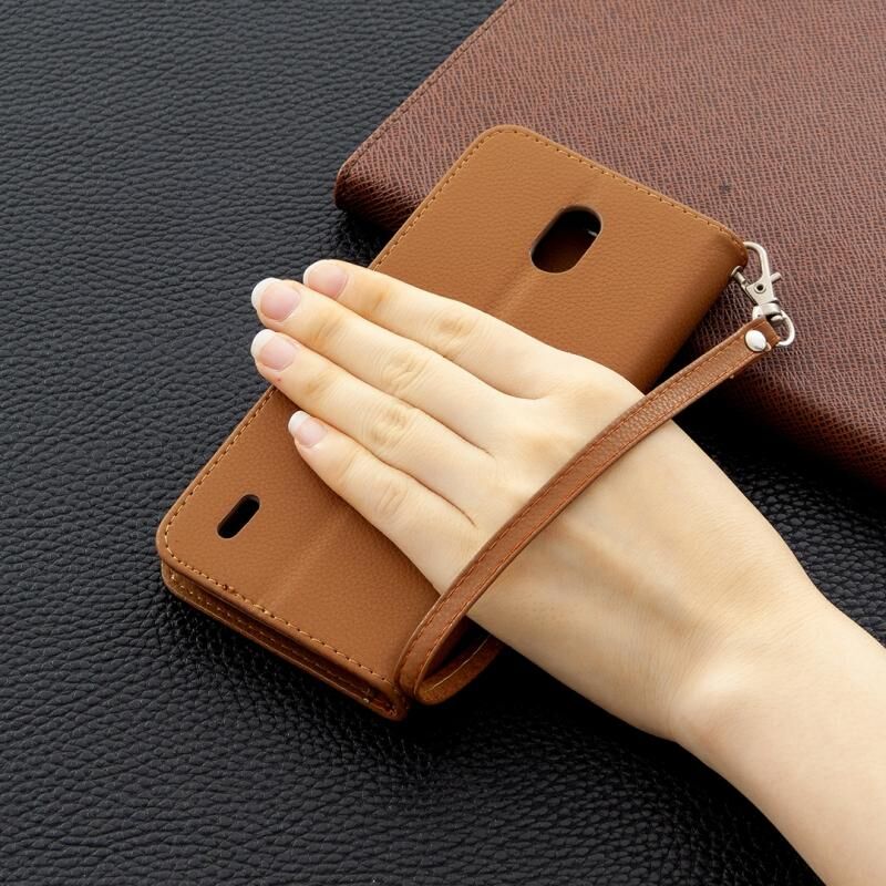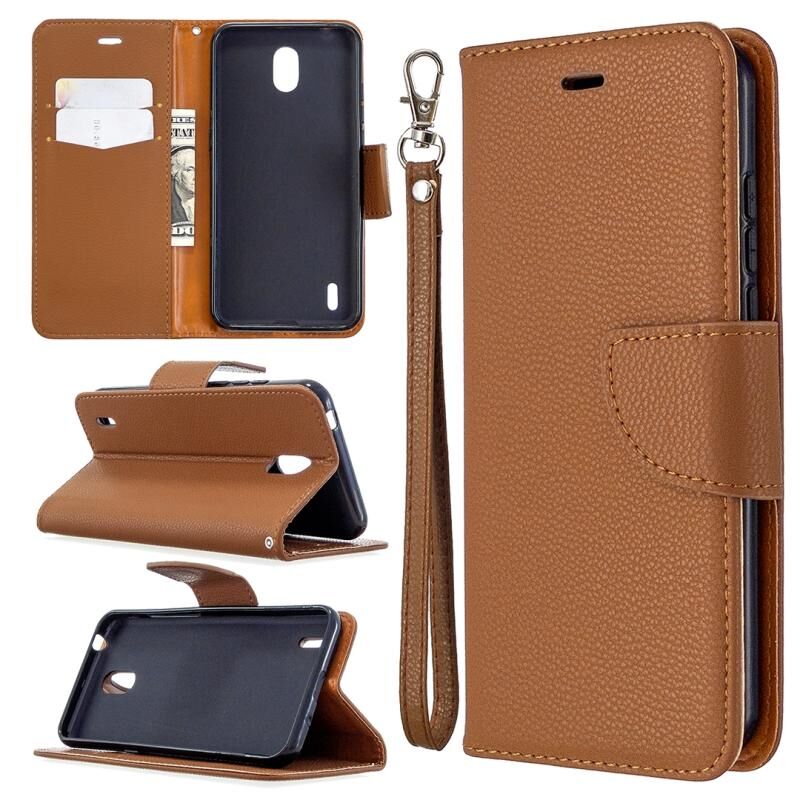 Για Nokia 1.3 Litchi υφή καθαρό χρώμα οριζόντια Flip δερμάτινη θήκη με θήκη & υποδοχές για κάρτες & πορτοφόλι & κορδόνι (καφέ)
