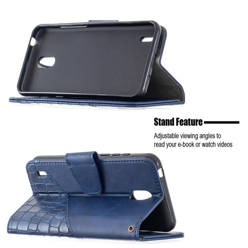 Θήκη για Nokia 1.3, χρώμα που ταιριάζει, υφή κροκόδειλου, οριζόντια αναδιπλούμενη από δερματίνη PU με πορτοφόλι & βάση & θήκες για κάρτες (Μαύρο)