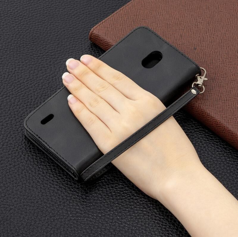 Για Nokia 1.3 Ρετρό δέρμα αρνί υφή καθαρό χρώμα οριζόντια Flip PU δέρμα υπόθεση με θήκη & υποδοχές για κάρτες & πορτοφόλι & κορδόνι (μαύρο)