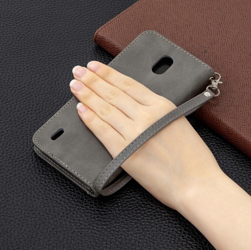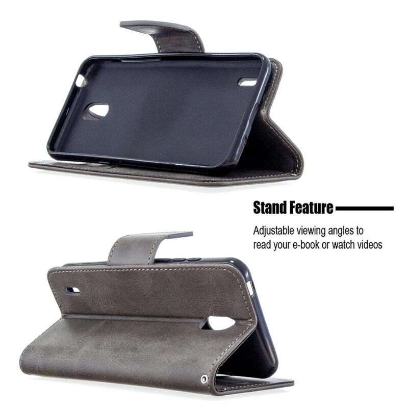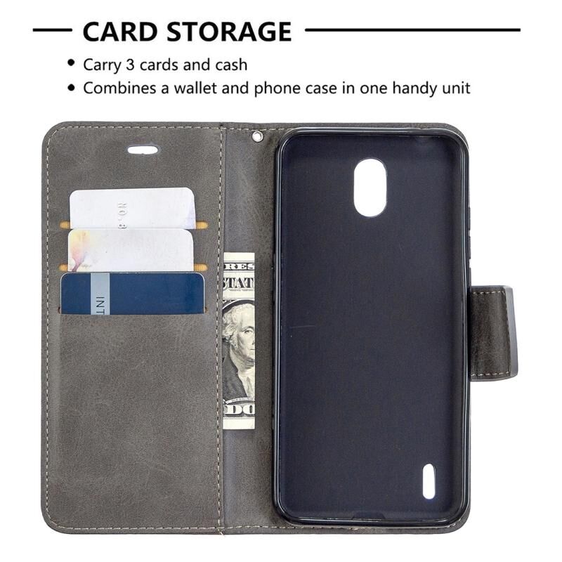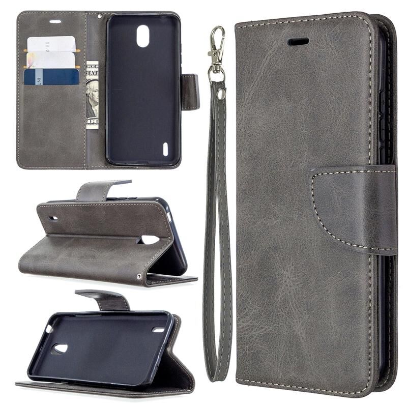 Για Nokia 1.3 Retro Lambskin υφή καθαρό χρώμα οριζόντια Flip PU δερμάτινη θήκη με κάτοχο & υποδοχές για κάρτες & πορτοφόλι & κορδόνι (γκρι)