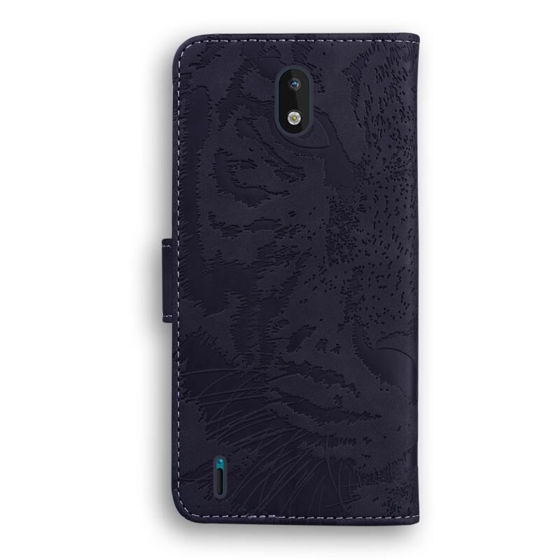 Θήκη δέρματος οριζόντιας αναδίπλωσης για Nokia 1.3 με ανάγλυφο σχέδιο τίγρης, με βάση & υποδοχές καρτών & πορτοφόλι (Μαύρο)