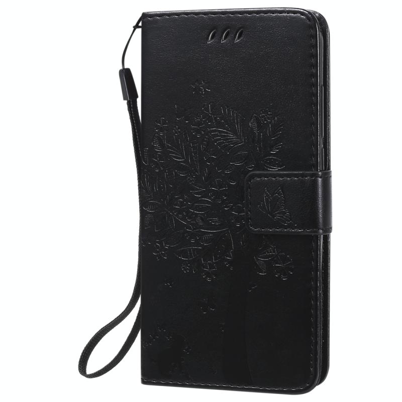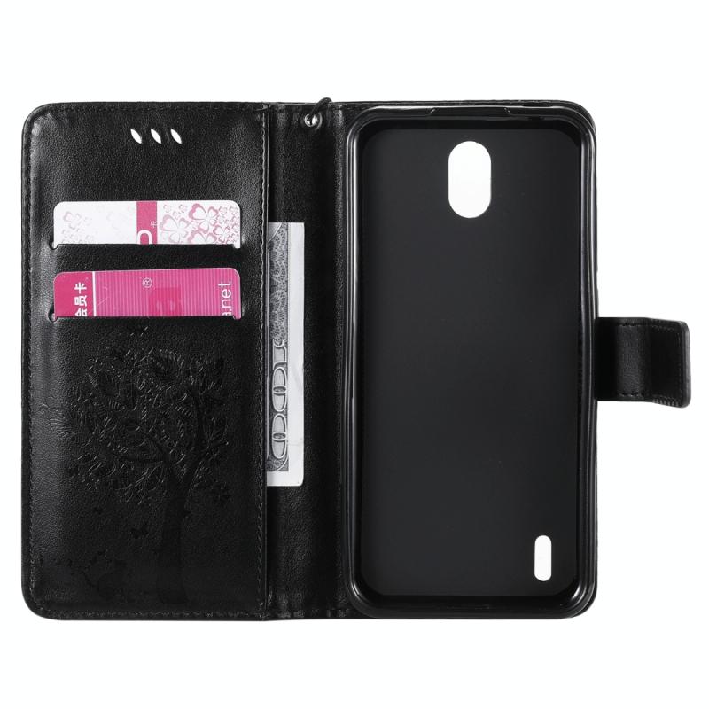 For Nokia 1.3 Tree & Cat Embossed Pattern Horizontal Flip Leather Case with Holder & Card Slots & Wallet & Lanyard(Black)