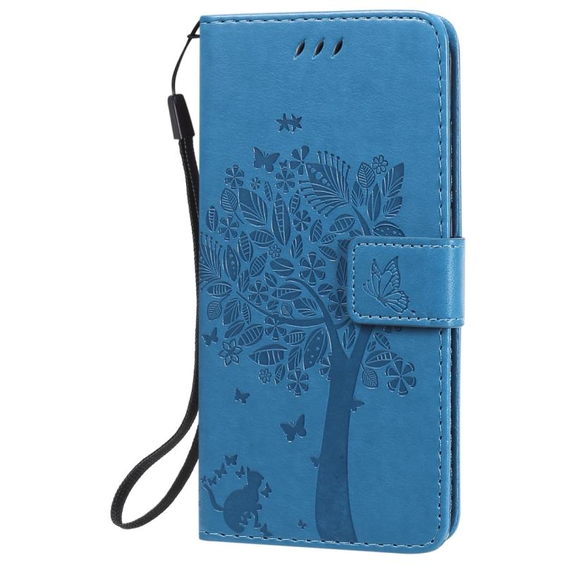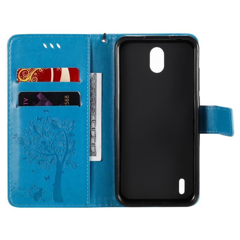 For Nokia 1.3 Tree & Cat Embossed Pattern Horizontal Flip Leather Case with Holder & Card Slots & Wallet & Lanyard(Blue)