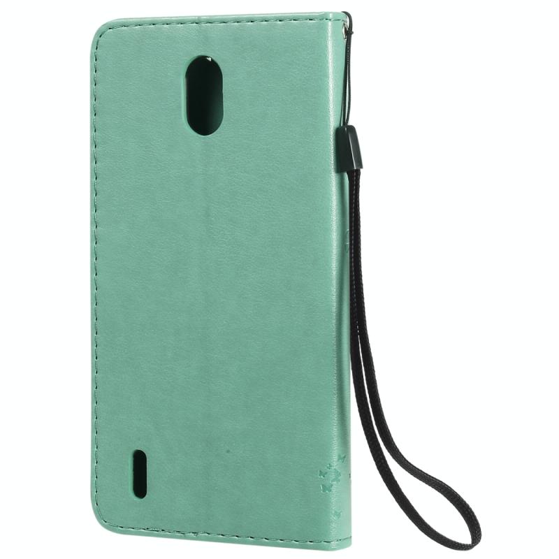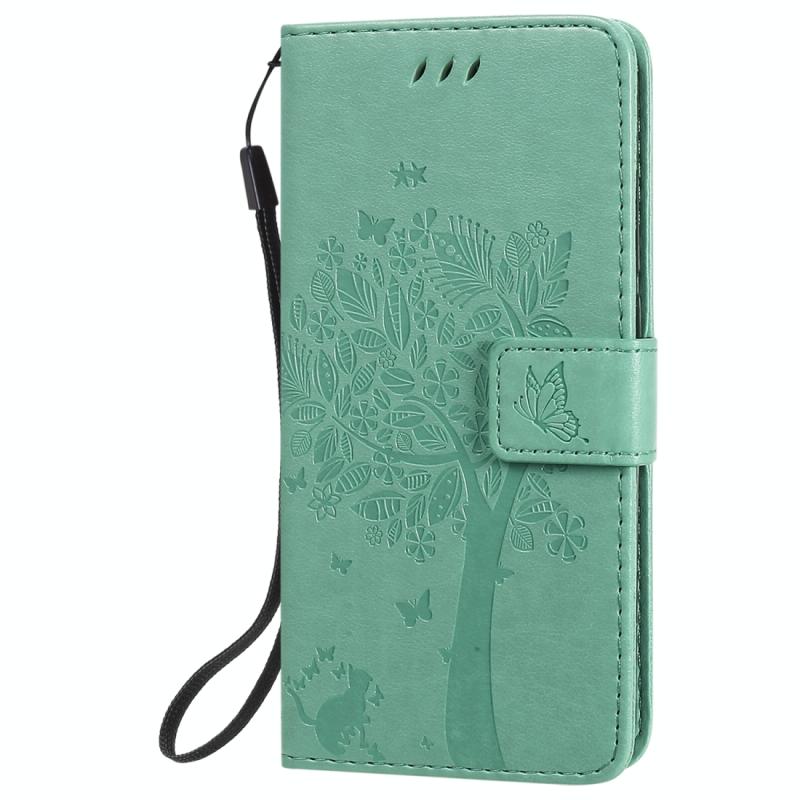 For Nokia 1.3 Tree & Cat Embossed Pattern Horizontal Flip Leather Case with Holder & Card Slots & Wallet & Lanyard(Green)