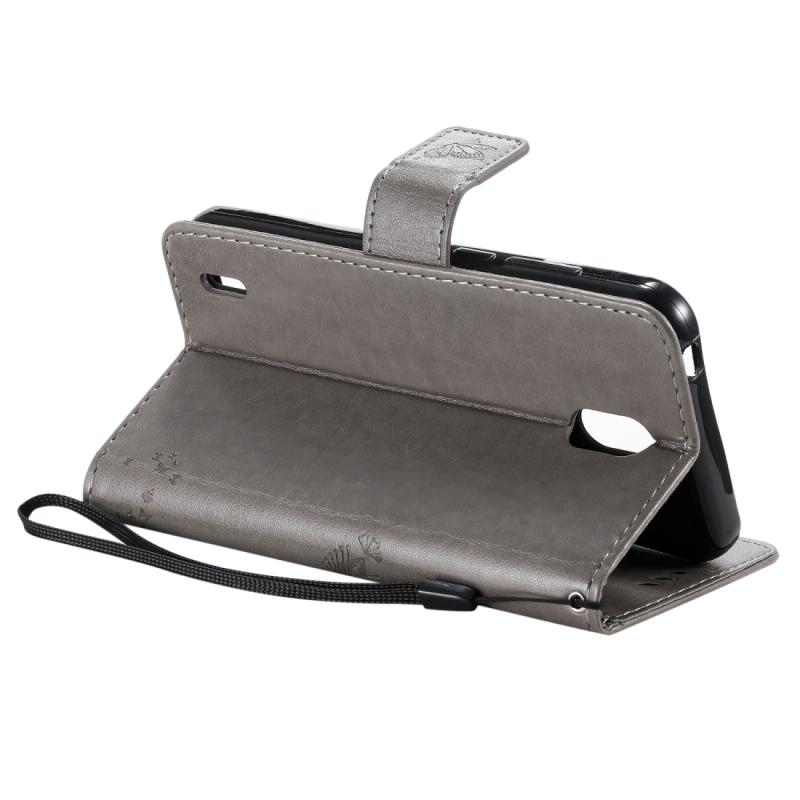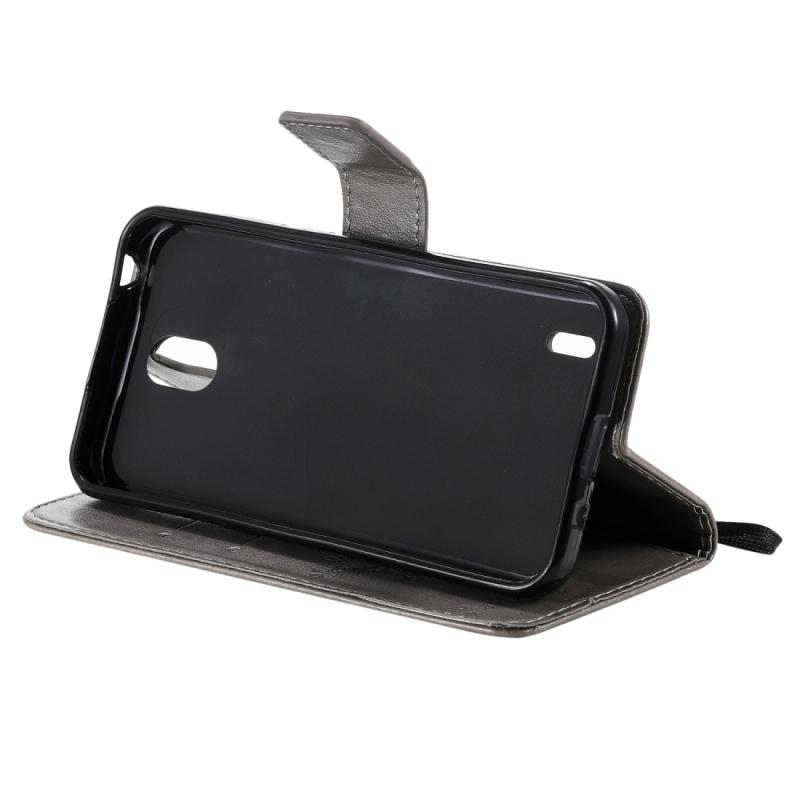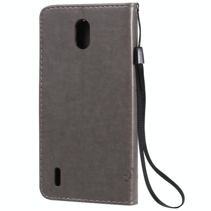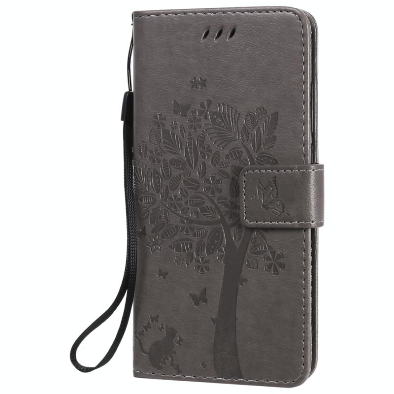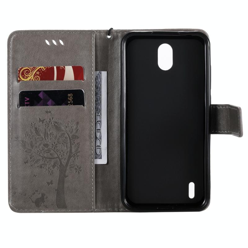 For Nokia 1.3 Tree & Cat Embossed Pattern Horizontal Flip Leather Case with Holder & Card Slots & Wallet & Lanyard(Grey)