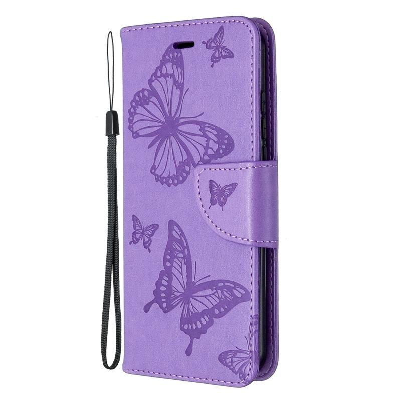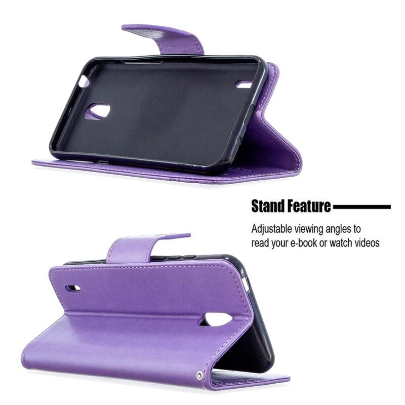 Θήκη δέρματος οριζόντιας αναδίπλωσης για Nokia 1.3 με σχέδιο ανάγλυφου "Δύο Πεταλούδες", με βάση, θήκη καρτών, πορτοφόλι και κορδόνι (Σκούρο Μπλε)