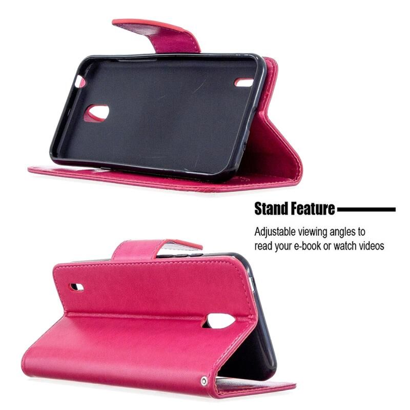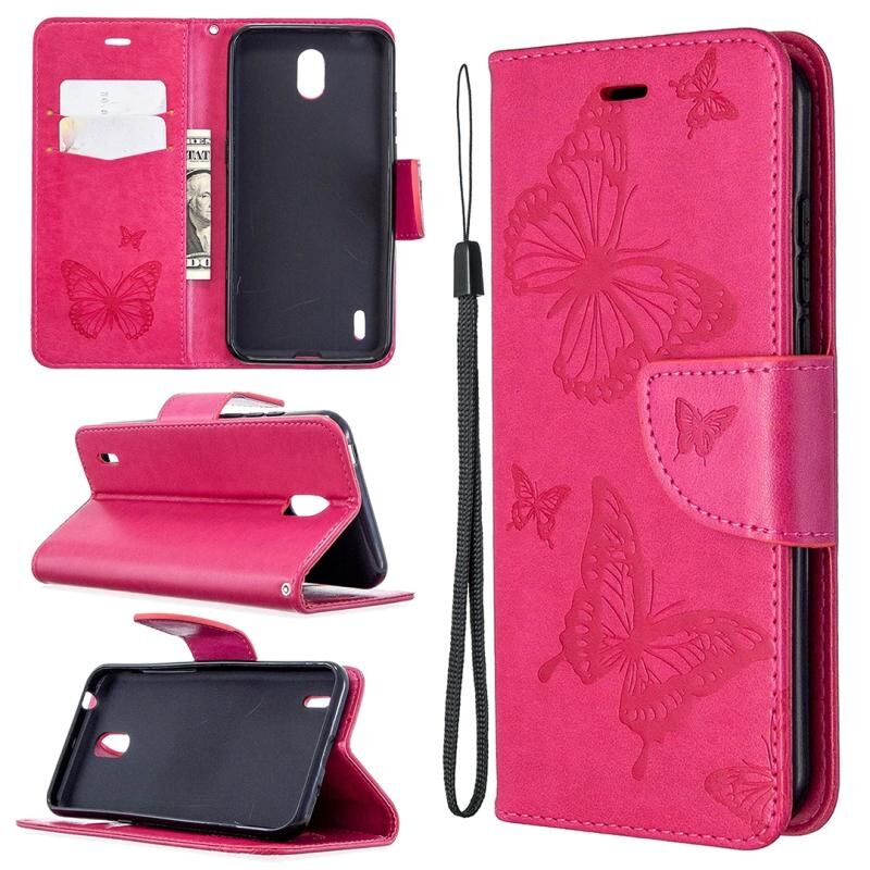 Θήκη δέρματος οριζόντιας αναδίπλωσης για Nokia 1.3 με σχέδιο δύο πεταλούδων σε ανάγλυφο, με βάση, θήκη καρτών, πορτοφόλι και κορδόνι (Χρυσό)