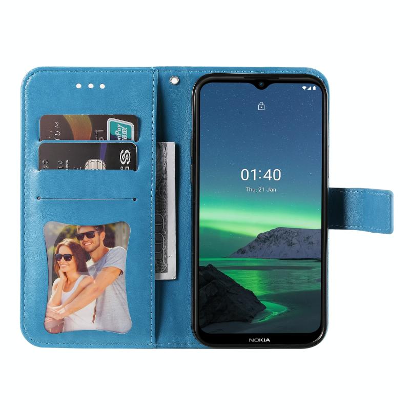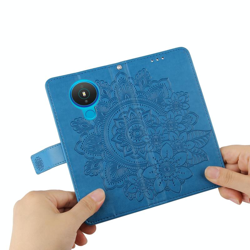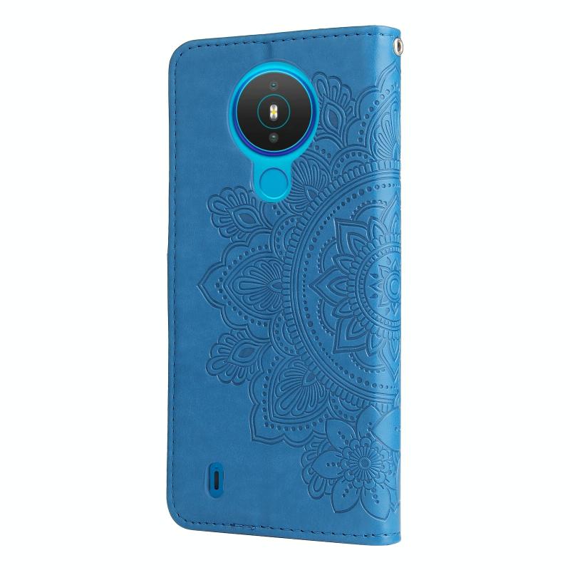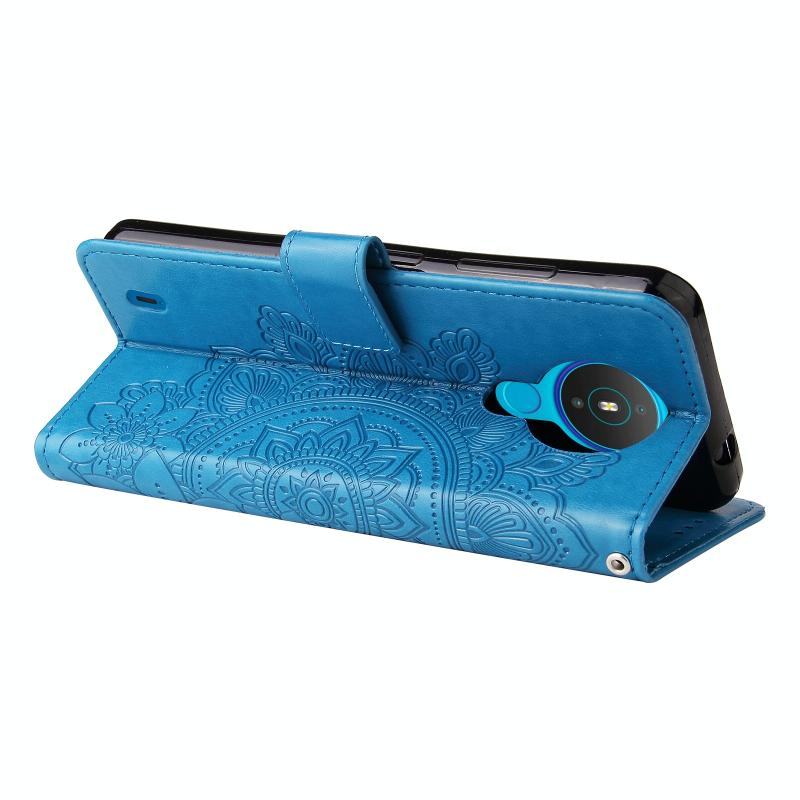 For Nokia 1.4 7-petal Flowers Embossing Pattern Horizontal Flip PU Leather Case with Holder & Card Slots & Wallet & Photo Frame(Blue)