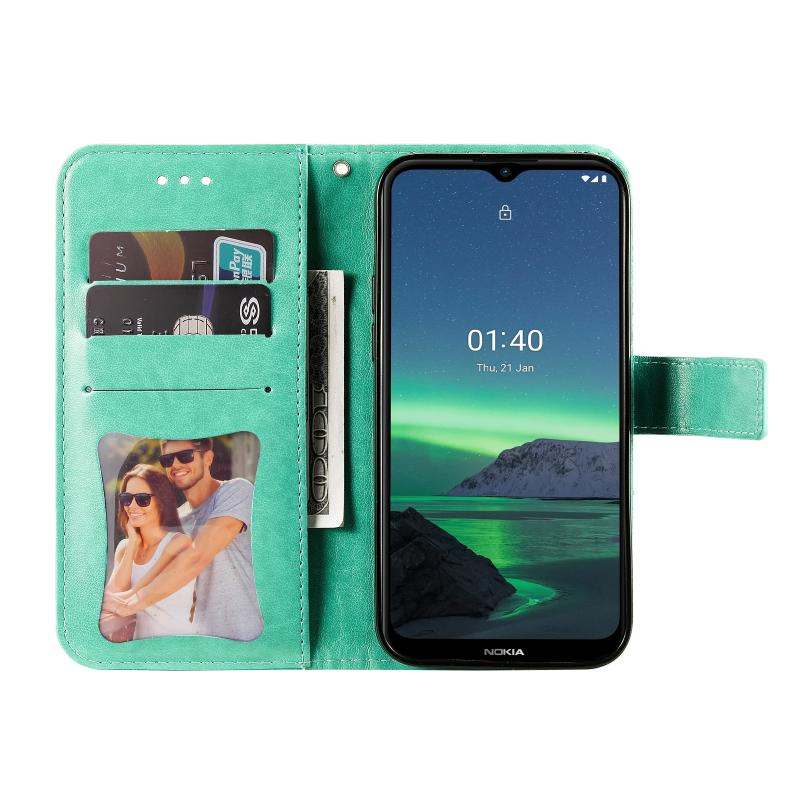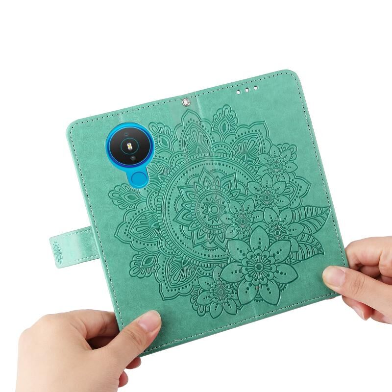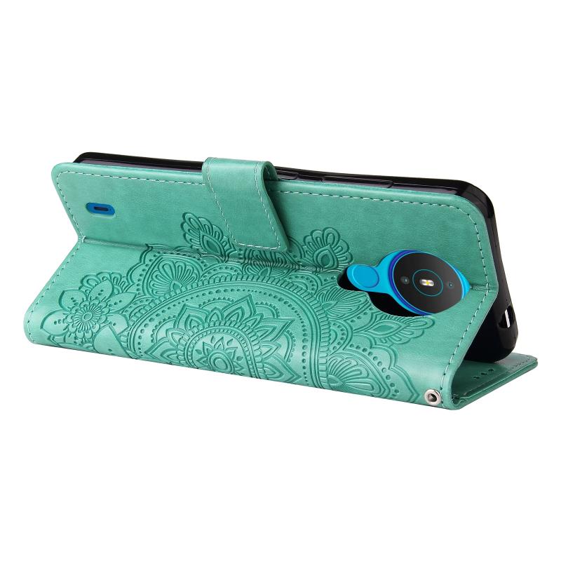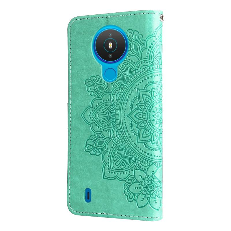 For Nokia 1.4 7-petal Flowers Embossing Pattern Horizontal Flip PU Leather Case with Holder & Card Slots & Wallet & Photo Frame(Green)