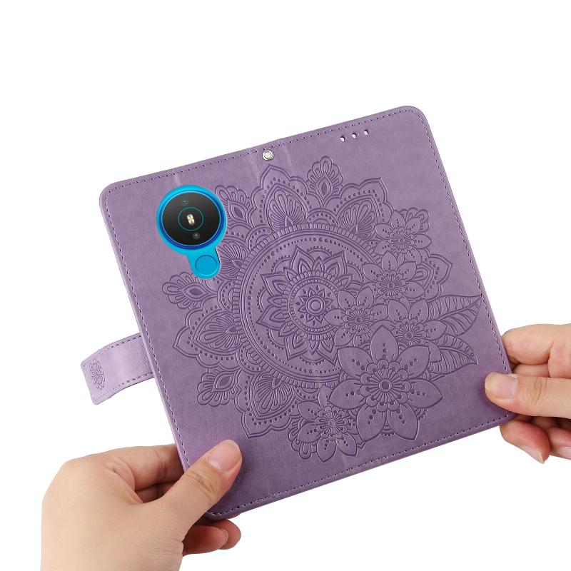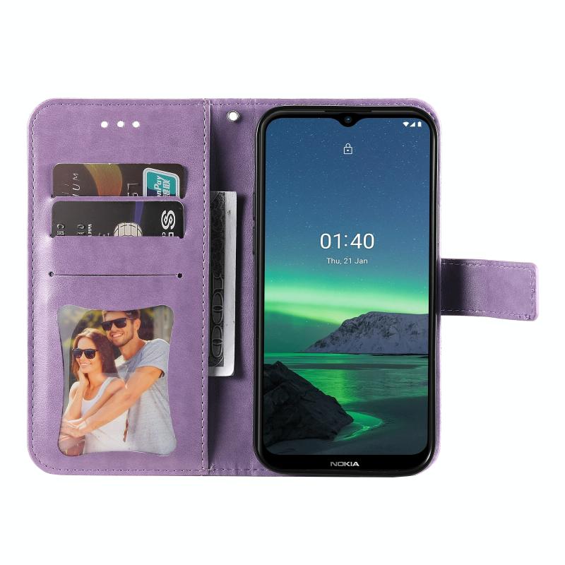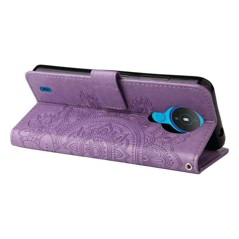 For Nokia 1.4 7-petal Flowers Embossing Pattern Horizontal Flip PU Leather Case with Holder & Card Slots & Wallet & Photo Frame(Light Purple)