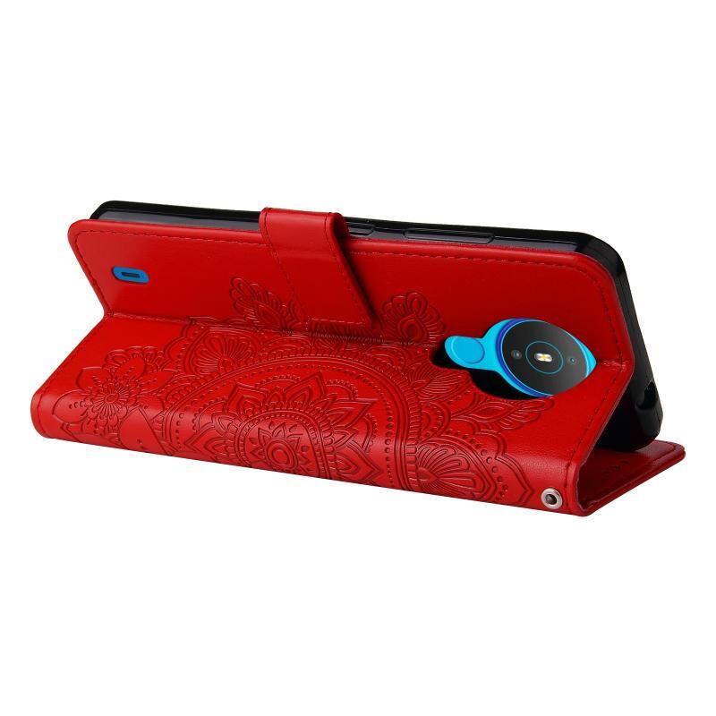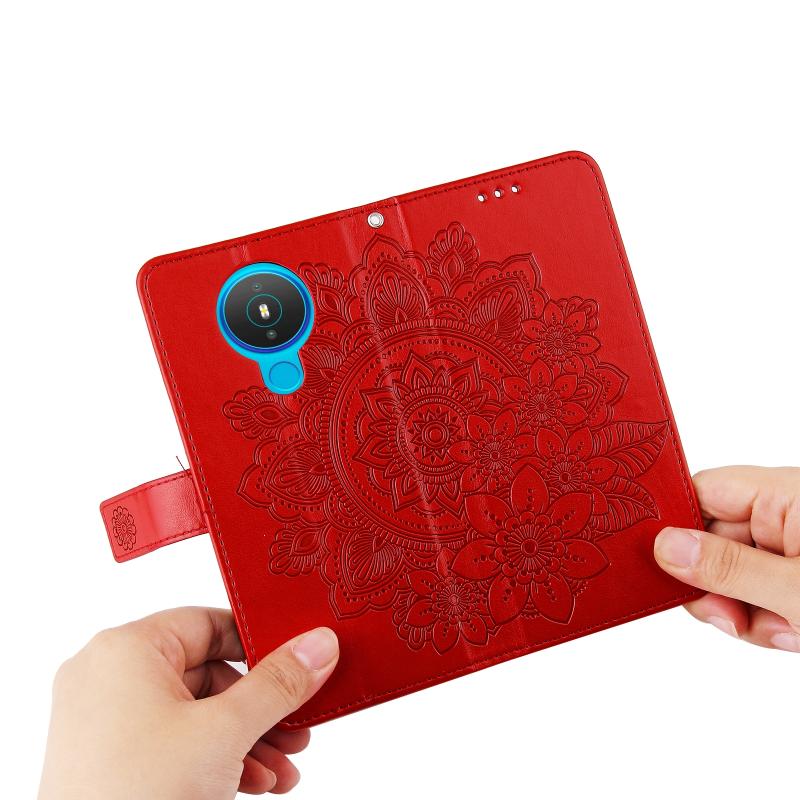 For Nokia 1.4 7-petal Flowers Embossing Pattern Horizontal Flip PU Leather Case with Holder & Card Slots & Wallet & Photo Frame(Red)